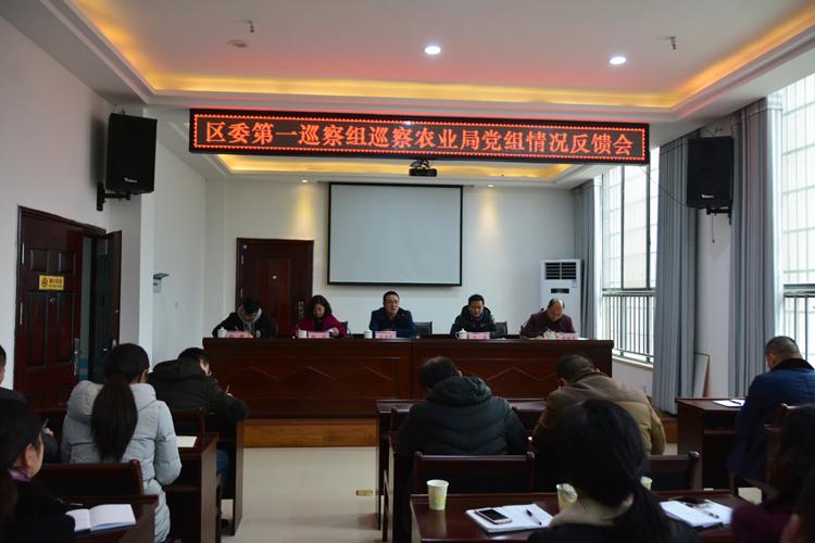 根据区委巡察工作领导小组的部署,1月23日,区委第一巡察组向区农业局反馈巡察情况,区委常委、纪委书记、区监察委主任、区委巡察工作领导小组组长李力之出席会议并讲话。区委第一巡察组副组长陈玲代表巡察组向区农业局进行了反馈,区委巡察办主任聂磊、第一巡察组成员姚轶参加会议。区农业局党组书记、局长易俊良主持会议并作表态发言。