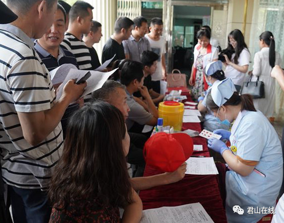上午八点,君山宾馆广场不少干部职工聚集在献血健康咨询区,大家在工作人员指导下填写献血者登记表、体检、化验、献血,现场秩序井然有序,受到活动现场爱心氛围的感染,很多爱心群众也加入到献血队伍中。在采血车内,血液站医护人员耐心地为献血人员讲解献血知识及献血后需要注意的相关事项,让他们能更坦然从容地面对无偿献血活动。