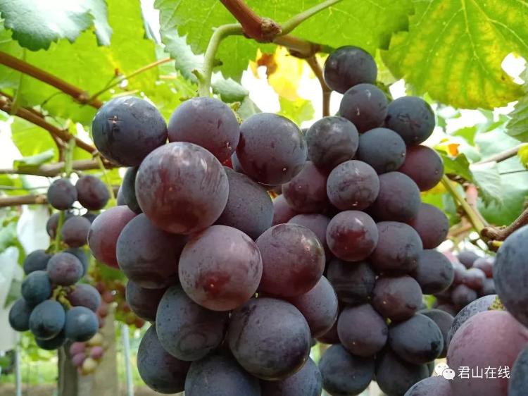 盛夏时节,正逢葡萄陆续上市。6月25日,在君山彭激光葡萄园里,阳光玫瑰、晨香、美人指、黄密、夏黑、巨峰等10多个葡萄品种都来赴约相聚。果实成熟待人摘,惹醉前来的观光食客。