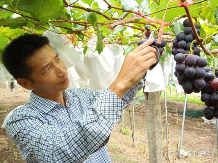 胡少君是君山区柳林洲街道芦花洲村建档立卡贫困户,去年老胡和儿子胡泽云承包了18亩地种植葡萄,并在彭激光那免费学习种葡萄技术,包括花穗整形、肥料使用技巧、病虫害防治等知识。农闲时,葡萄农户们还自发组织到彭激光葡萄园听他现场讲解葡萄种植技巧,现场教课如一个流动的小课堂,农户们遇到种植方面的难题,彭激光都会现场操作示范,知无不言。葡萄种植经济效益良好,具有投资周期短、效益回报快等特点。