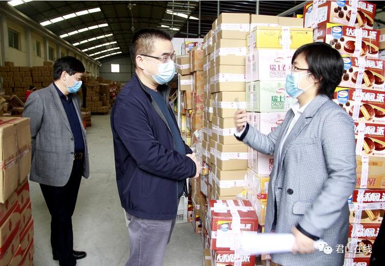 2月25日,君山区委副书记、区长李勇到新洲农贸市场和及时雨物流园调研,副区长丰为民及相关部门负责人参与调研。