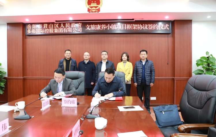 李勇代表区政府对框架协议的签订表示热烈祝贺,他说,君山区区位优势明显、自然资源丰富、文化底蕴深厚,在未来,文旅、康养将是君山的发展方向,多弗文旅康养小镇项目的签约落地,对提升君山旅游品牌整体实力、推进君山全域旅游发展、促进经济社会全面发展具有重要意义,希望多弗集团充分发挥自身实力和竞争优势,高质量建设、高水平运营,把项目做精、做强、做优,君山区政府将在政策和政务服务上配合多弗集团,实现互惠互利、合作共赢。