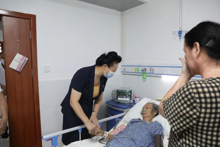 魏淑萍一行来到区中医院,看望慰问卧病在床的朱双连。朱双连的丈夫张如祥为“抗美援朝”老兵,半个世纪前在作战中牺牲在朝鲜战场,被追授为烈士。现92岁的朱双连因身体原因,在区中医院进行保守治疗。魏淑萍说,张如祥同志在保卫祖国的战斗中牺牲了自己宝贵的生命,他为国为民无私奉献的精神值得我们每一个人学习,全区广大党员干部要带着责任、带着感情,做好烈士遗属的关怀帮扶工作,让他们充分感受到组织的温暖。