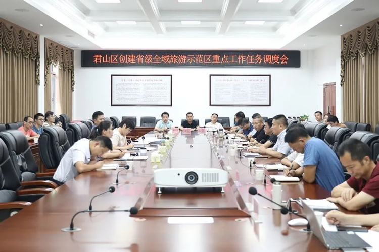 7月15日,全区创建省级全域旅游示范区重点工作任务调度会召开,区委书记雷欣强调,文化旅游是市委市政府规划建成的七大千亿产业之一,我区作为习近平总书记“守护好一江碧水”重要指示精神的首倡地,要提高思想站位,强化目标导向,做到常抓不懈,全面加速君山文化和旅游产业大发展,力争在今年完成湖南省全域旅游示范区的创建工作。区委副书记、区长候选人陈淼,区委常委、宣传部长赵婷,副区长周志辉及相关单位负责人参加。