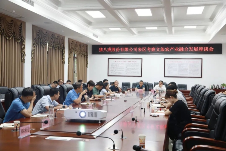 8月23日,君山区委书记雷欣就文旅农产业融合发展与猪八戒股份有限公司展开座谈。区委常委、宣传部长吴国良,区委常委、区委办主任易俊良,副区长提名候选人张洁及相关单位负责人参加。