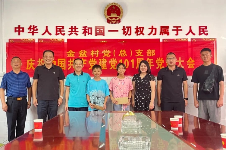 活动中,沈容为金盆村的3位小朋友们送上了6000元的助学资金,向“点式养老”中心捐赠了价值3000元的大米、油、牛奶等物资,为小朋友和老人们送去了关爱与温暖。罗遥鼓励孩子们要热爱学习,祝福老人们身体安康。