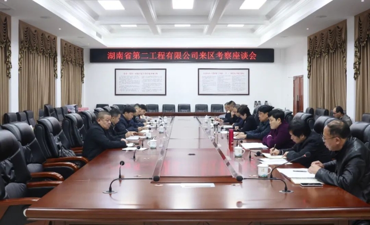 2月21日,湖南省第二工程有限公司来区考察,区委书记雷欣出席,省第二工程公司党委副书记、副董事长、总经理杨彬,区委常委、区委政法委书记庞域建,区委常委、区委办主任易俊良,区委常委、副区长方腊初,副区长叶凯文及相关单位主要负责人参加。