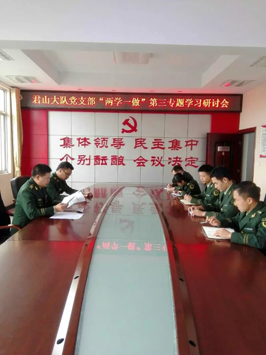 10月20日下午,君山大队组织全体党员召开了“两学一做”学习教育第三专题讨论会,大中队两级党支部分别展开了研讨。