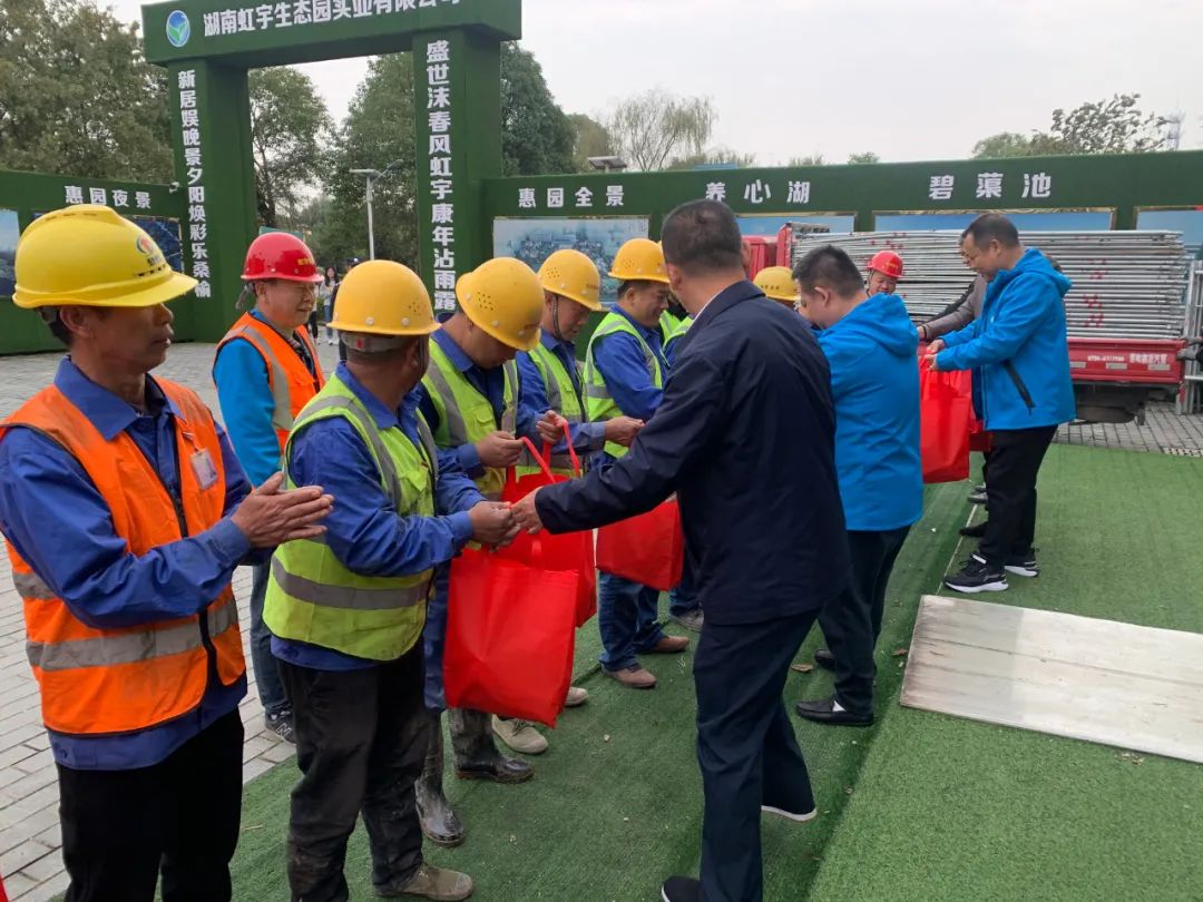 10月19日,君山区总工会来到国泰食品、洞庭湖博物馆、虹宇生态园等目前正在抓紧施工的3个重点项目工程施工现场,对奋战在一线的工人进行慰问,并为他们送上了矿泉水、饮料等慰问品,带去了工会组织的关心和关爱。