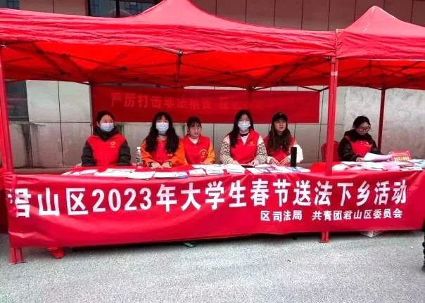 2月1日,为深入贯彻落实党的二十大精神,充分发挥好高校大学生的普法生力军作用,进一步营造良好的法治环境,区司法局联合共青团君山区委组织23名君山籍大学生志愿者在君山产业开发区“春风行动”暨就业援助月现场开展2023年大学生寒假期间送法下乡志愿服务活动。