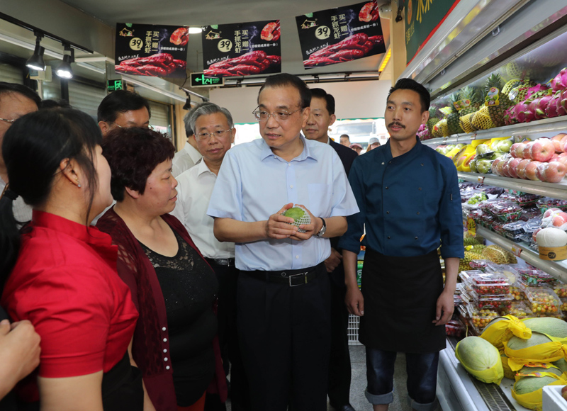 考察途中,李克强临时停车走进一家水果店,询问水果涨价情况和原因,他叮嘱随行的地方和部门负责同志说,现在市场供求总体平衡,要关注部分关系群众日常生活的产品价格变动情况,采取适当措施,保障供应充裕、价格合理。