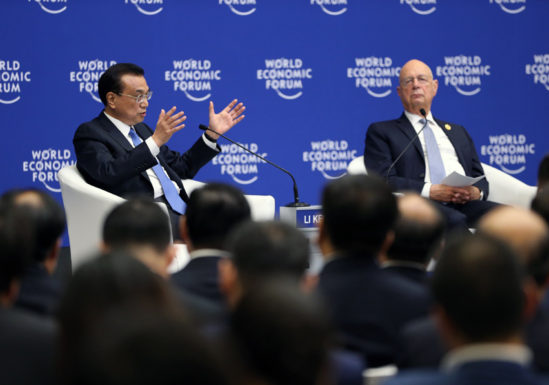 李克强就与会代表提出的关于中国营商环境、产业链调整、企业创新、金融业开放以及民营企业发展等问题回答了提问。世界经济论坛主席施瓦布主持对话会。来自世界各国的200余名各界代表出席。