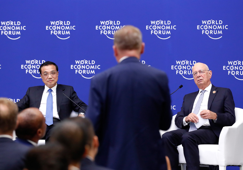 李克强同出席2019年夏季达沃斯论坛的各界代表举行对话会