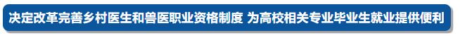 二是在已出台的年底前对执业兽医资格实行“先上岗、再考证”的基础上,通过推动修法改革执业兽医资格考试方式,允许兽医相关专业高校学生在校期间报考、考试合格的毕业时即取得执业资格。同时,取消执业兽医注册和乡村兽医登记许可,使取得执业兽医资格的人员备案即可执业,具有兽医相关专业中等以上学历的人员备案即可担任乡村兽医。