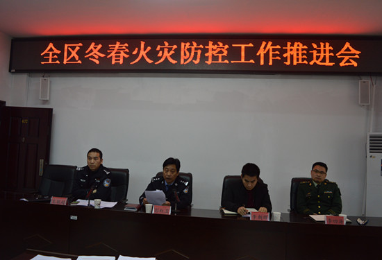 最后,副区长彭红卫同志就切实做好全区冬春火灾防控工作提出三点意见:一、要始终保持高度警惕,充分认识到当前严峻的火灾形势。各级各部门要切实加强组织领导,强化工作措施,坚决预防和遏制较大以上火灾事故发生。二、要始终紧盯防控重点,坚决清除各类火灾隐患,对发现的火灾隐患坚决做到零容忍,对排查发现的隐患问题,要依法严格落实刚性措施。三、要始终强化跟踪问效,确保消防安全责任落到实处。要坚决严守底线、坚决严密措施,深入推进我区冬春火灾防控工作纵深开展,确保春节及“两会”期间全区消防安全形势持续平稳。