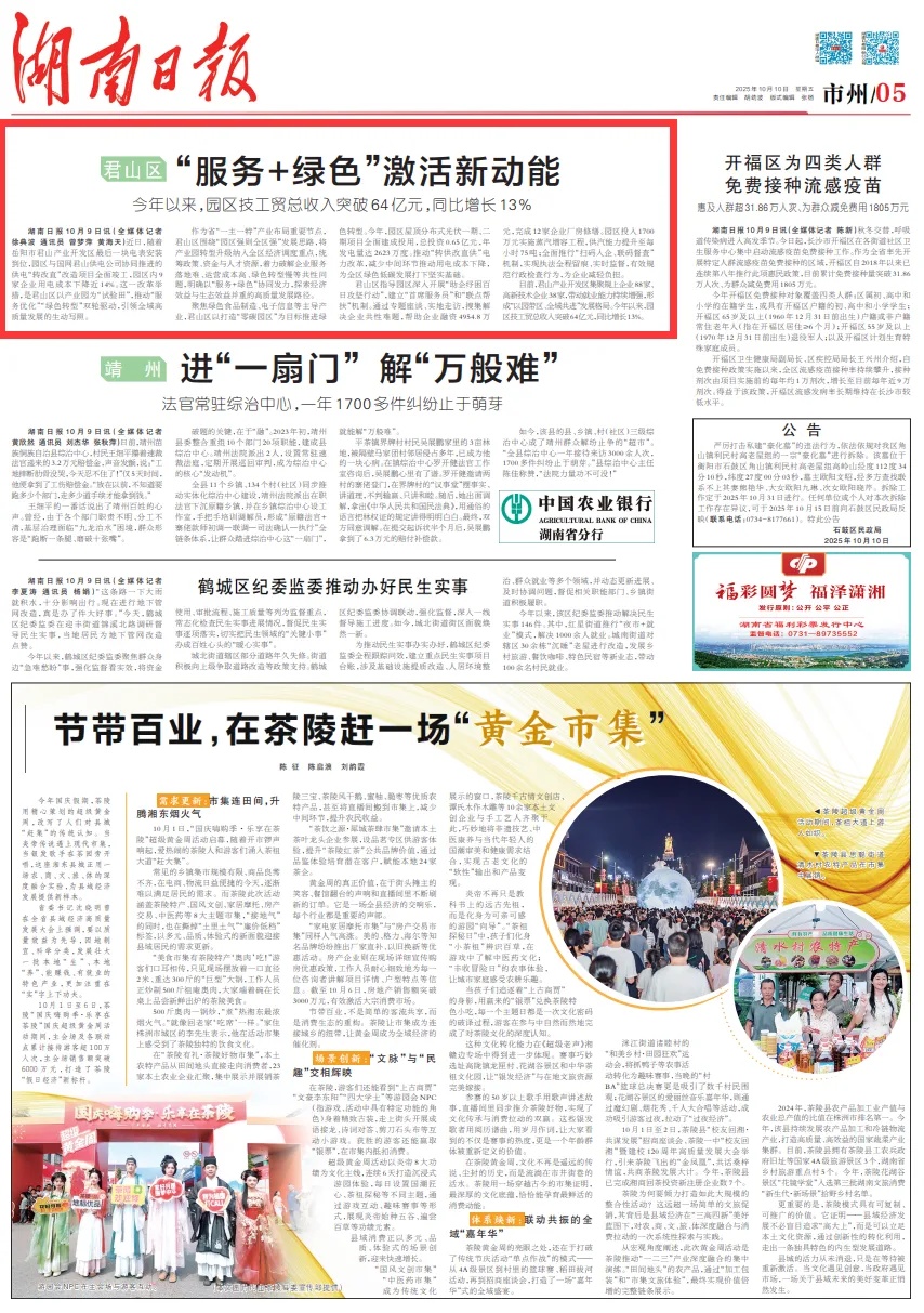 目前,君山产业开发区集聚规上企业88家、高新技术企业38家,带动就业能力持续增强,形成“以园带区、全域共进”发展格局。今年以来,园区技工贸总收入突破64亿元,同比增长13%。