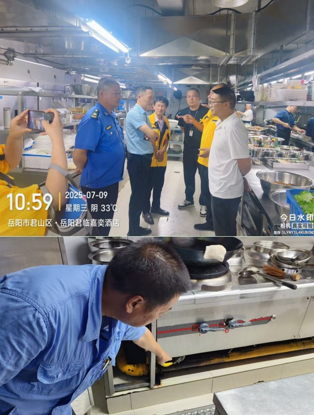 为切实强化燃气安全管理,防范安全事故发生,2025年7月9日,岳阳市城市管理综合行政执法支队君山大队联合区城管局燃气办对辖区内餐饮场所开展了燃气安全专项检查。在专项检查中,发现君临嘉奕酒店存在未安装符合行业标准的熄火保护装置的问题,违反了《中华人民共和国安全生产法》第三十六条之规定。执法人员依据《中华人民共和国安全生产法》第九十九条,当场下达《限期改正(停止)违法行为通知书》,责令其限期整改。