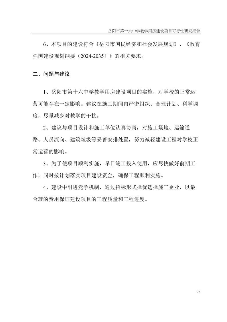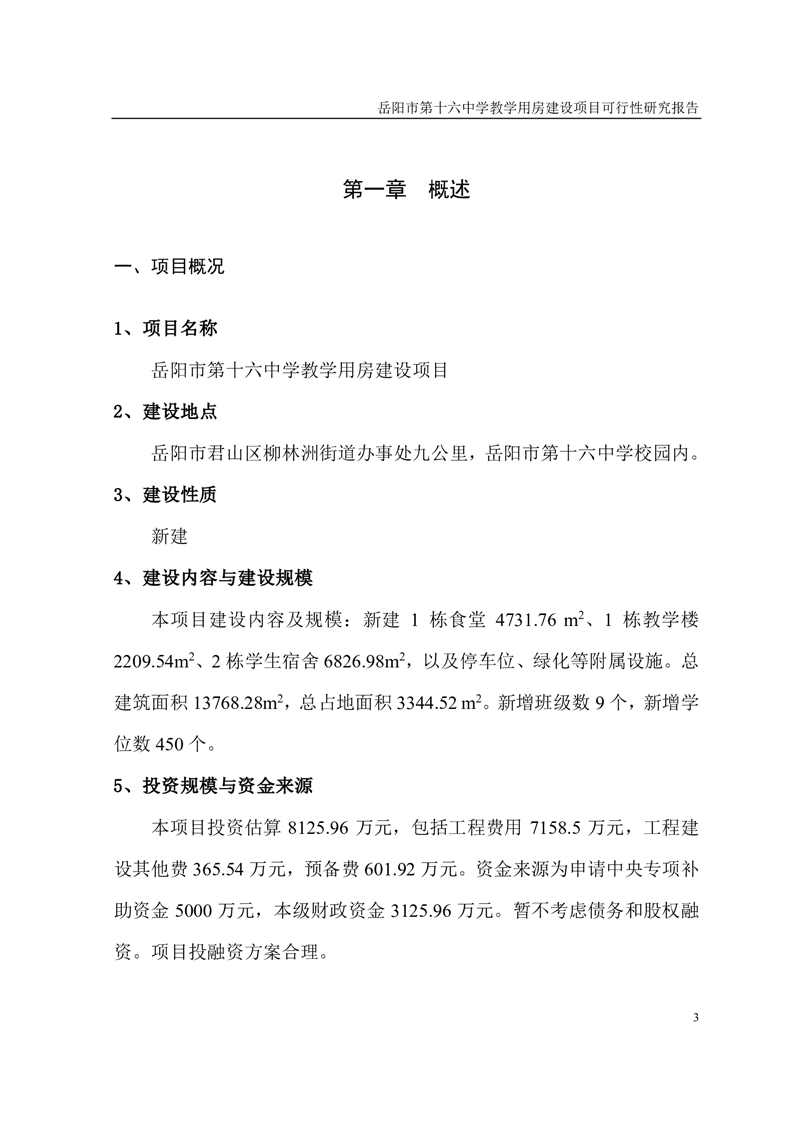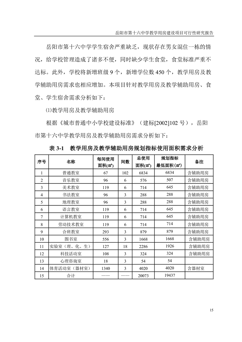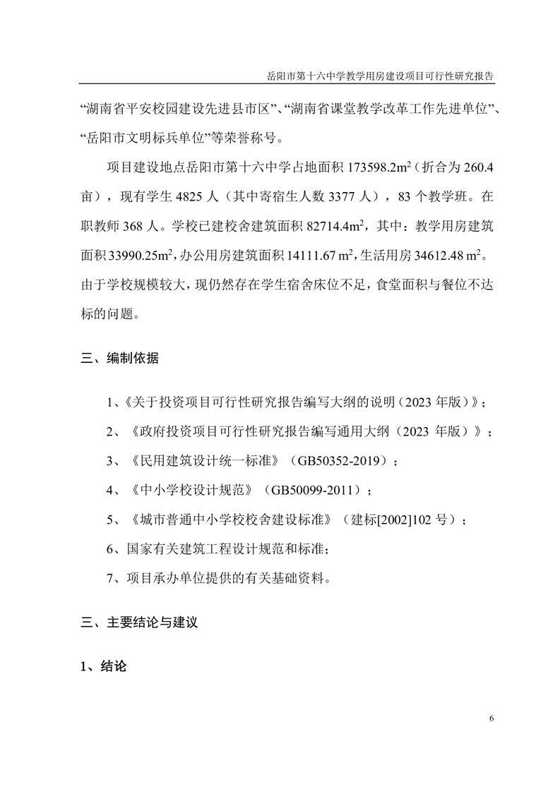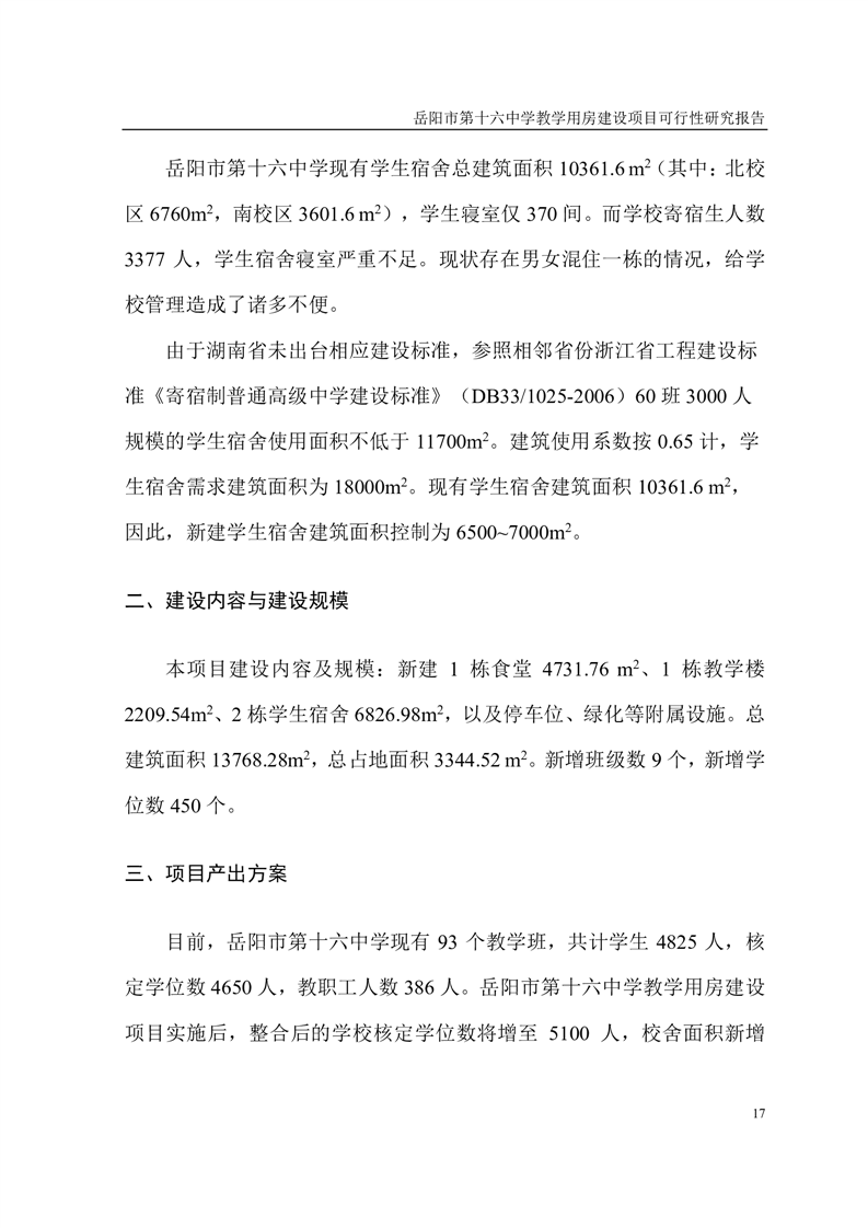 岳阳市第十六中学教学用房建设项目可行性研究报告