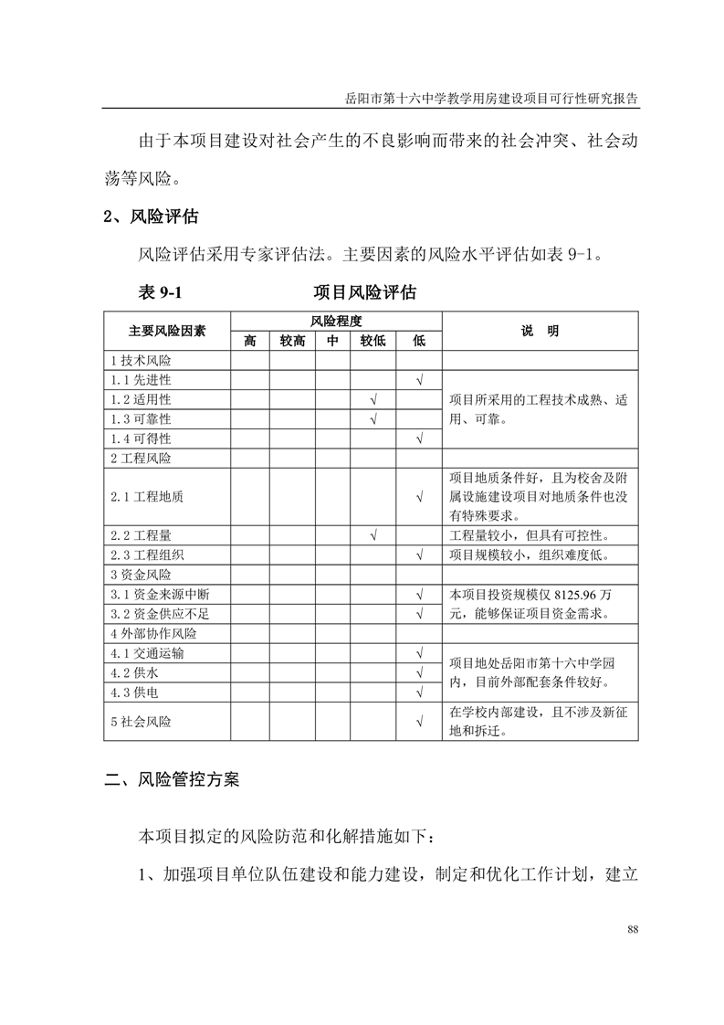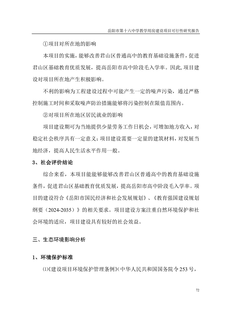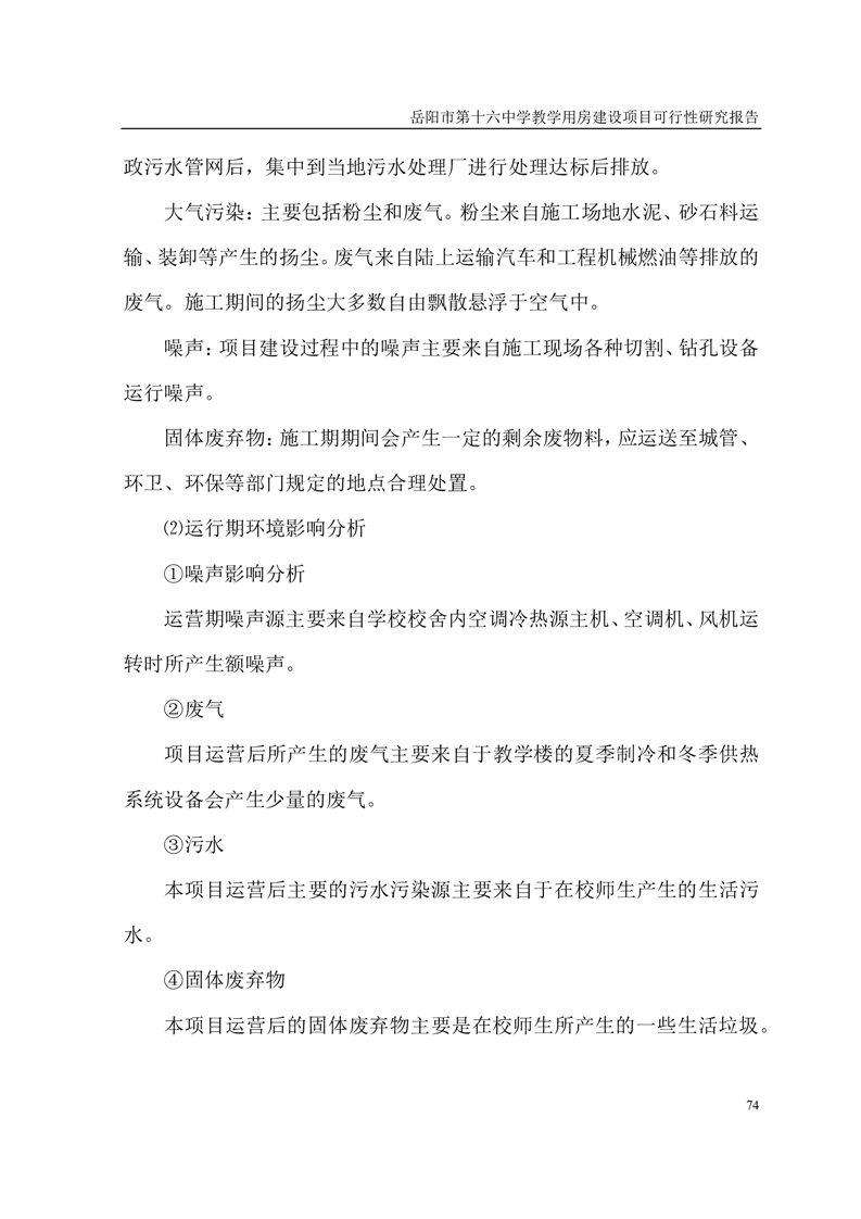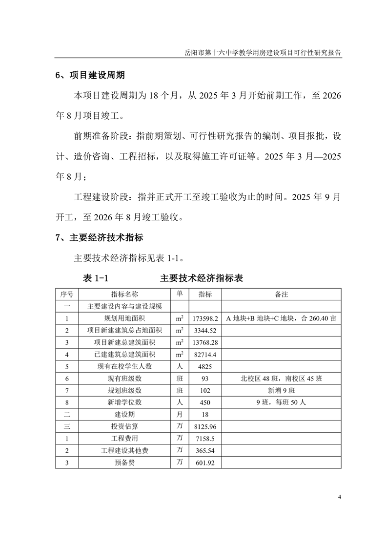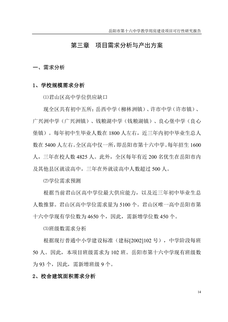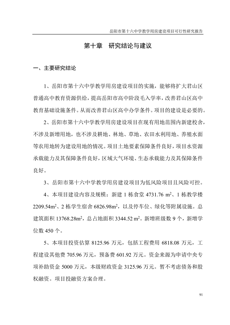 岳阳市第十六中学教学用房建设项目可行性研究报告