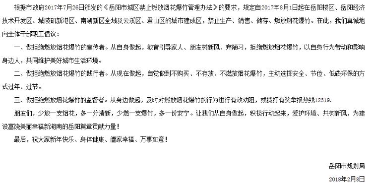 拒绝燃放烟花爆竹 共同维护美好生活