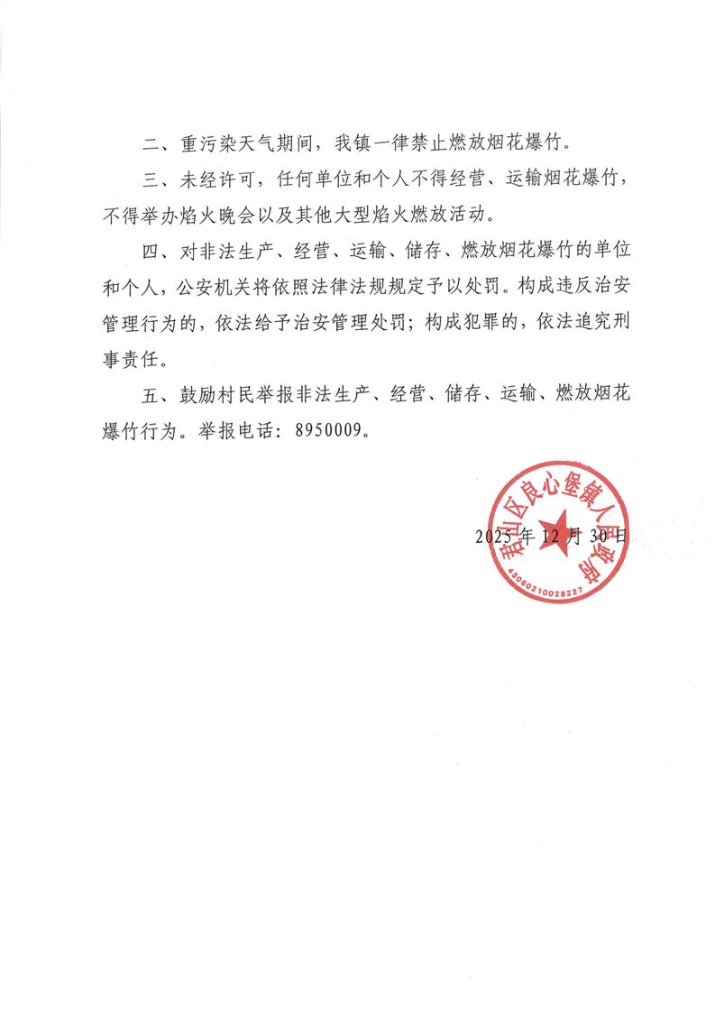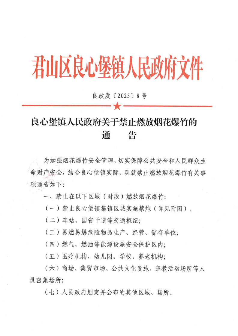 良心堡镇人民政府关于禁止燃放烟花爆竹的通告
