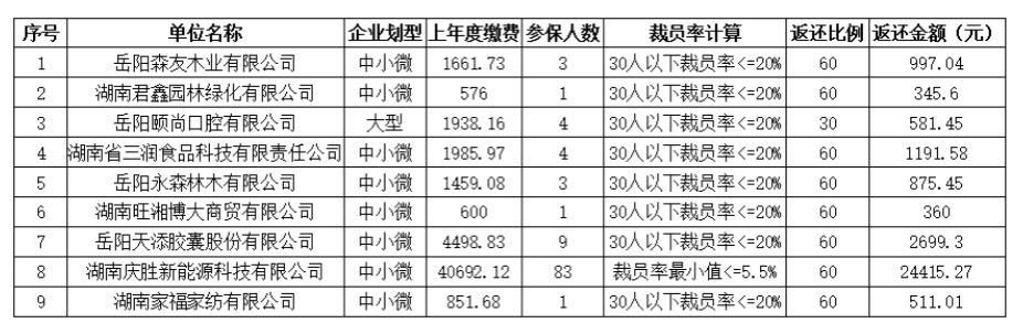君山区2025年失业保险稳岗返还公示(第二批)
