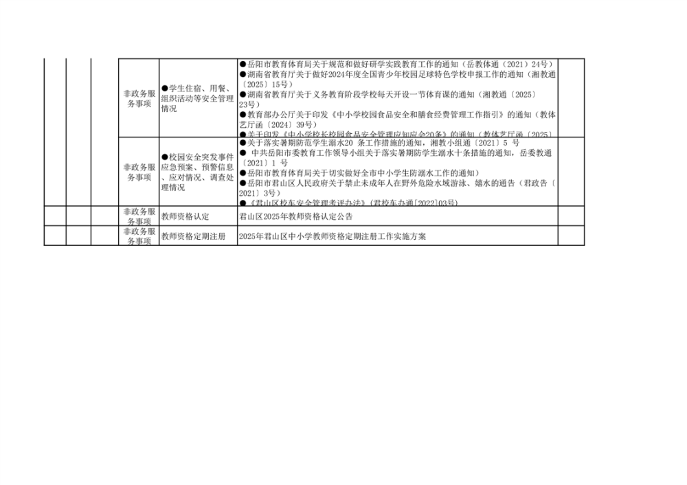 君山区义务教育领域基层政务公开标准目录(2025年)