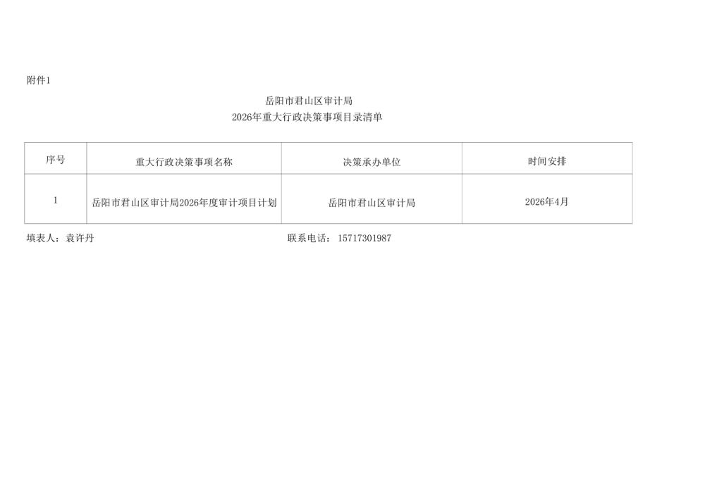 岳阳市君山区审计局2026年重大行政决策事项目录清单