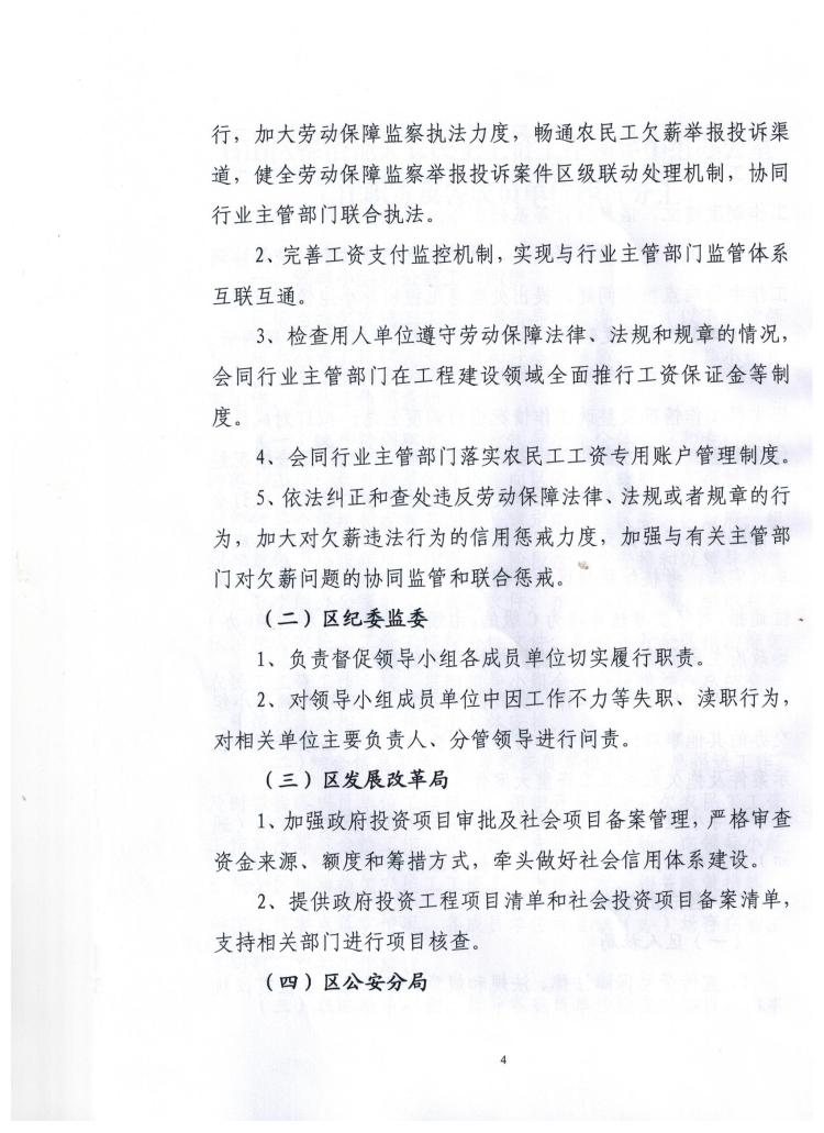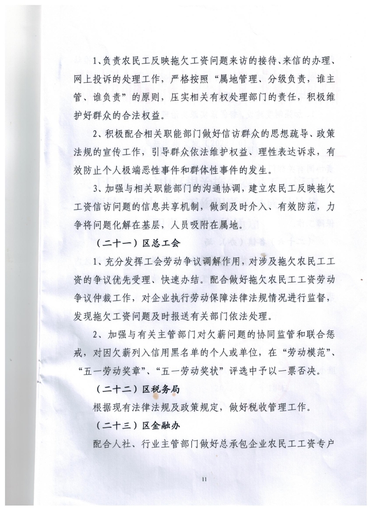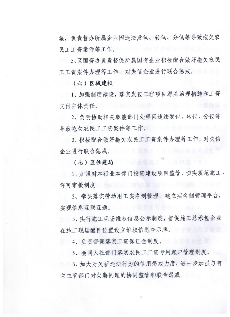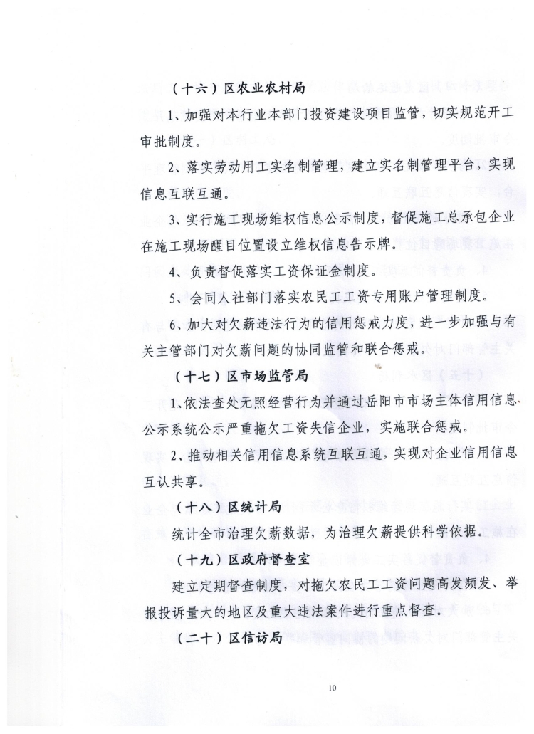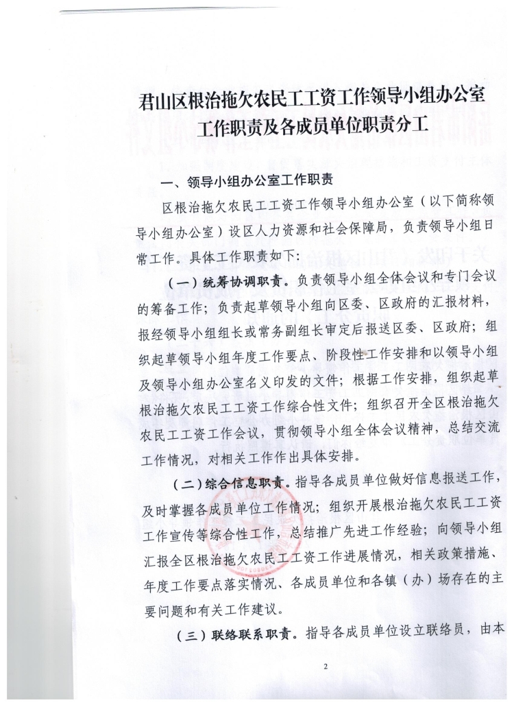 关于印发《君山区根治拖欠农民工工资工作领导小组办公室工作职责及各成员单位职责分工》的通知