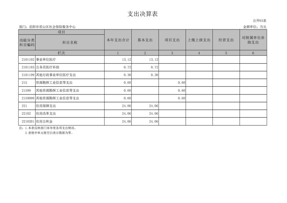 2024年度岳阳市君山区社会保险服务中心部门决算公开
