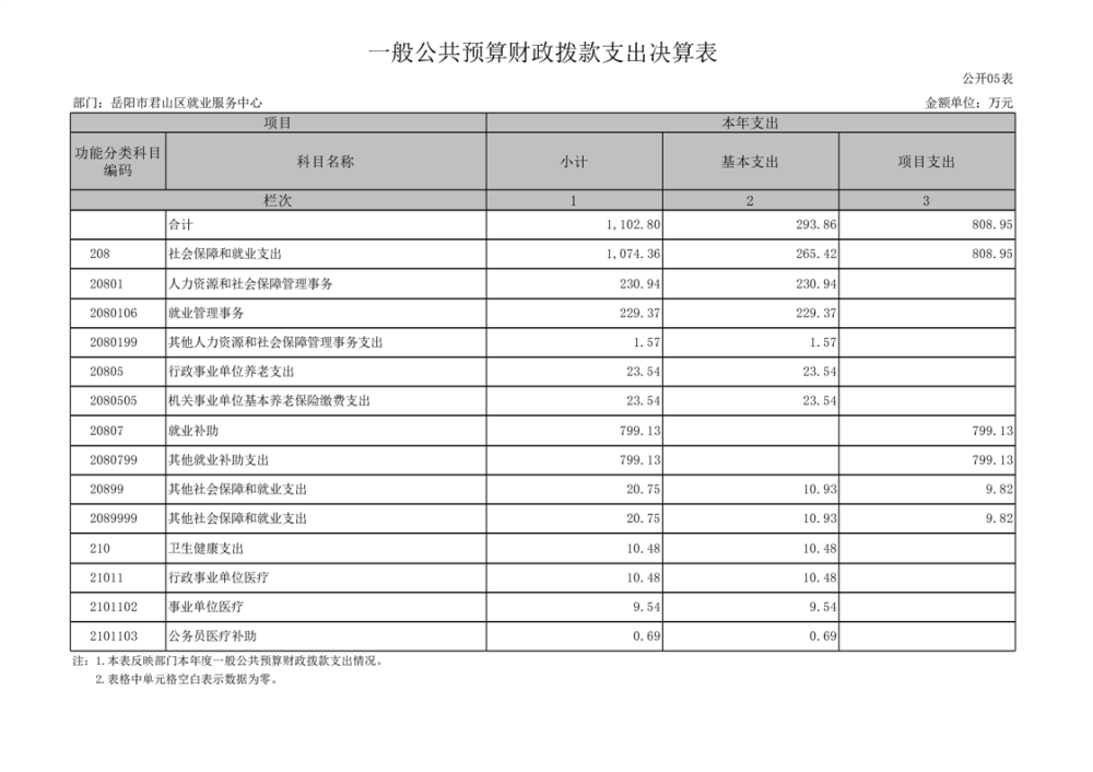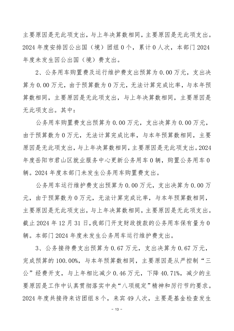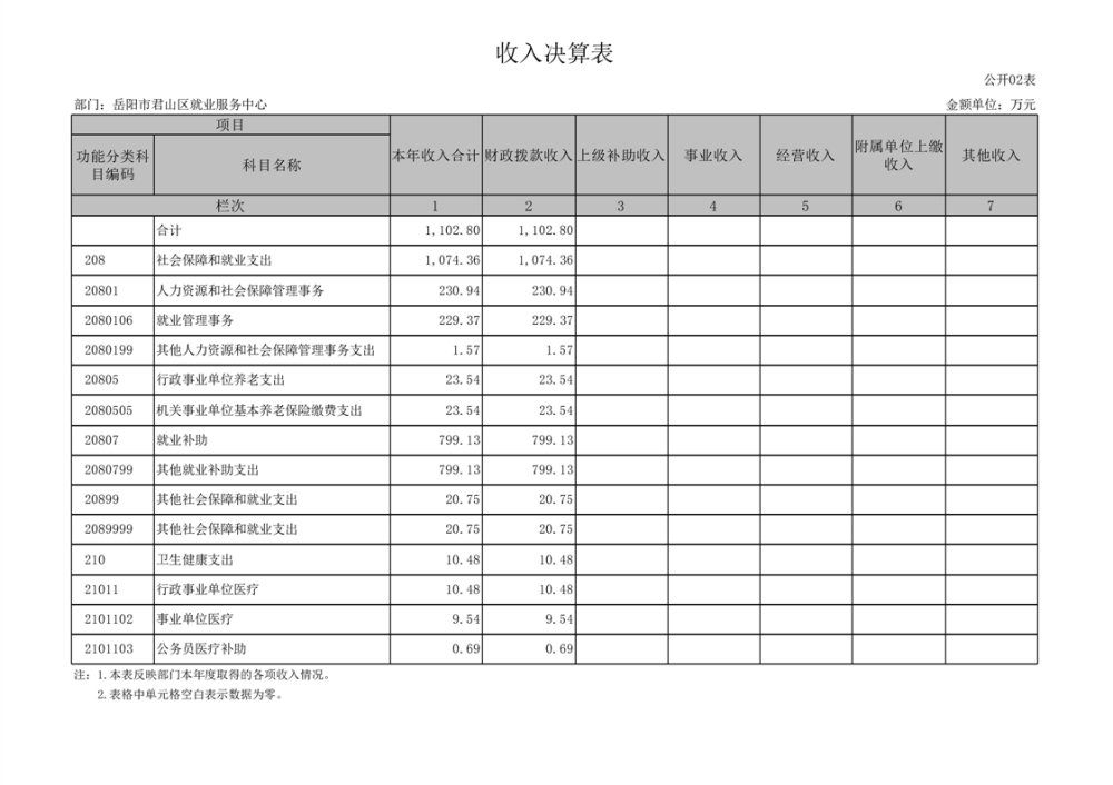2024年度岳阳市君山区就业服务中心部门决算公开