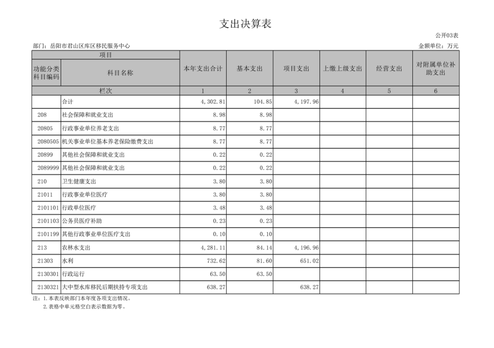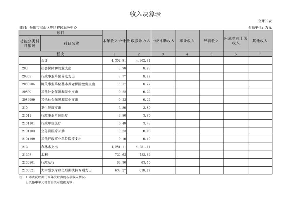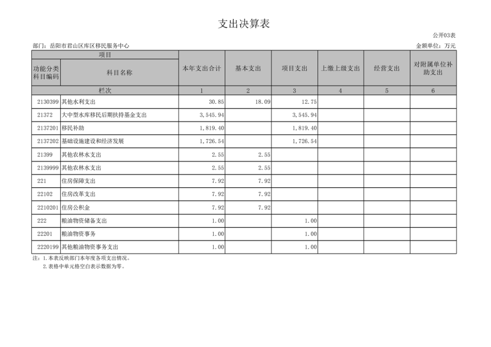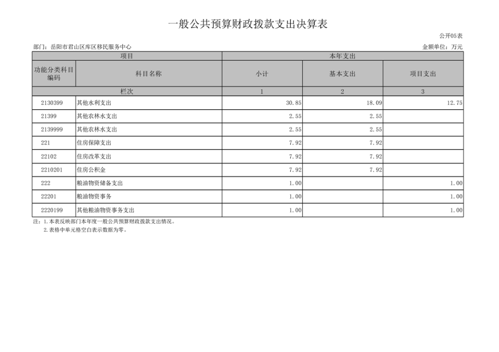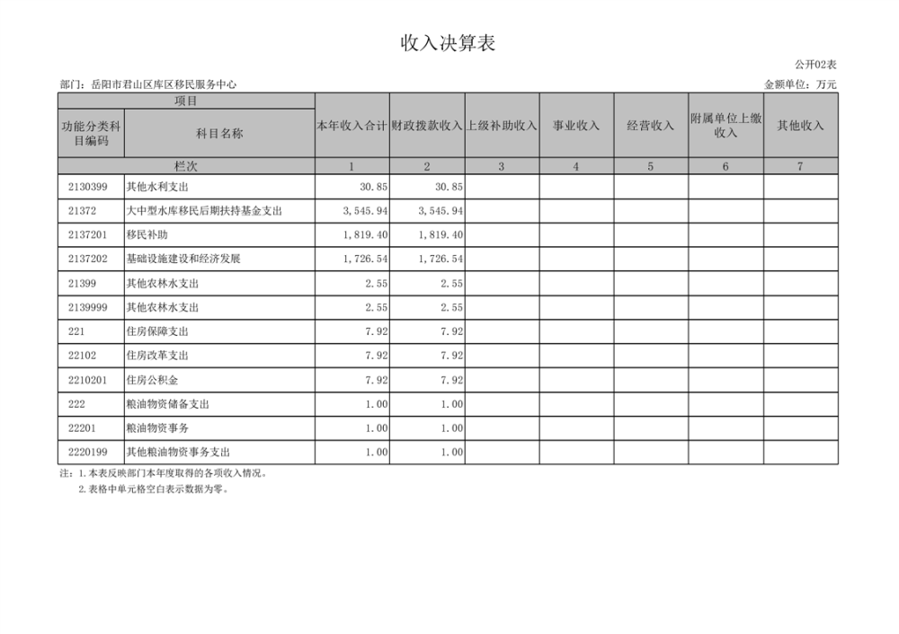 2024年度岳阳市君山区库区移民服务中心部门决算公开