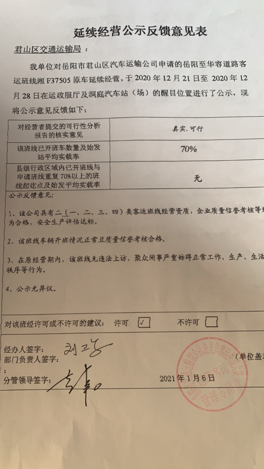 县际客运相关许可公示(延续)