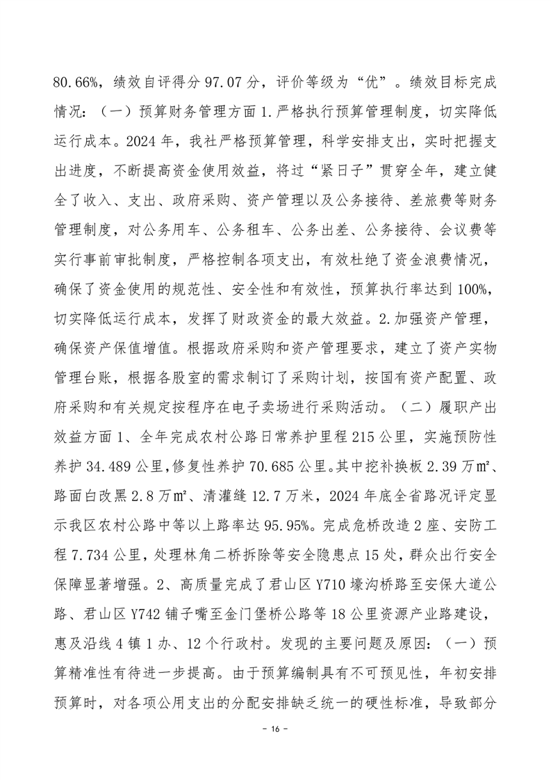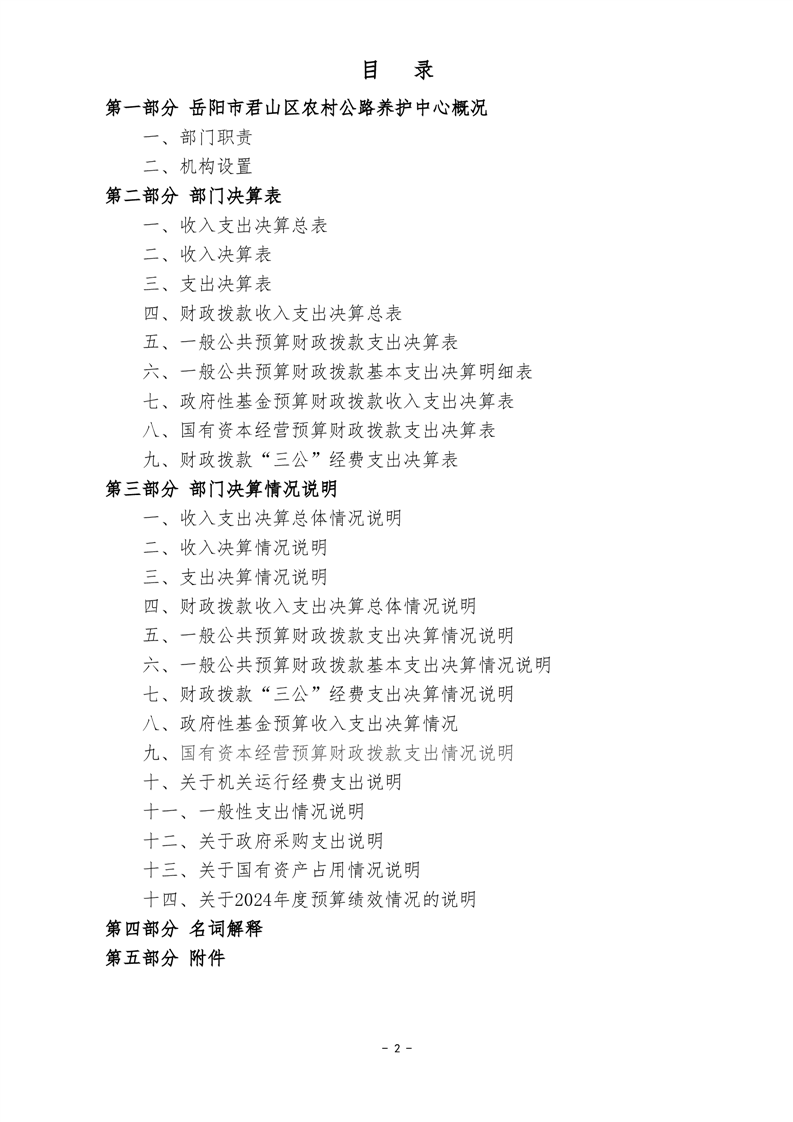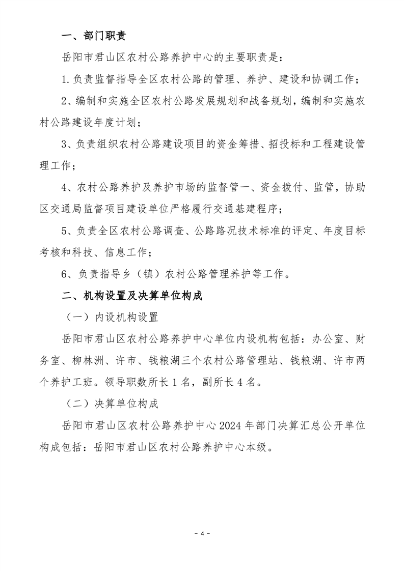 2024年度岳阳市君山区农村公路养护中心部门决算公开