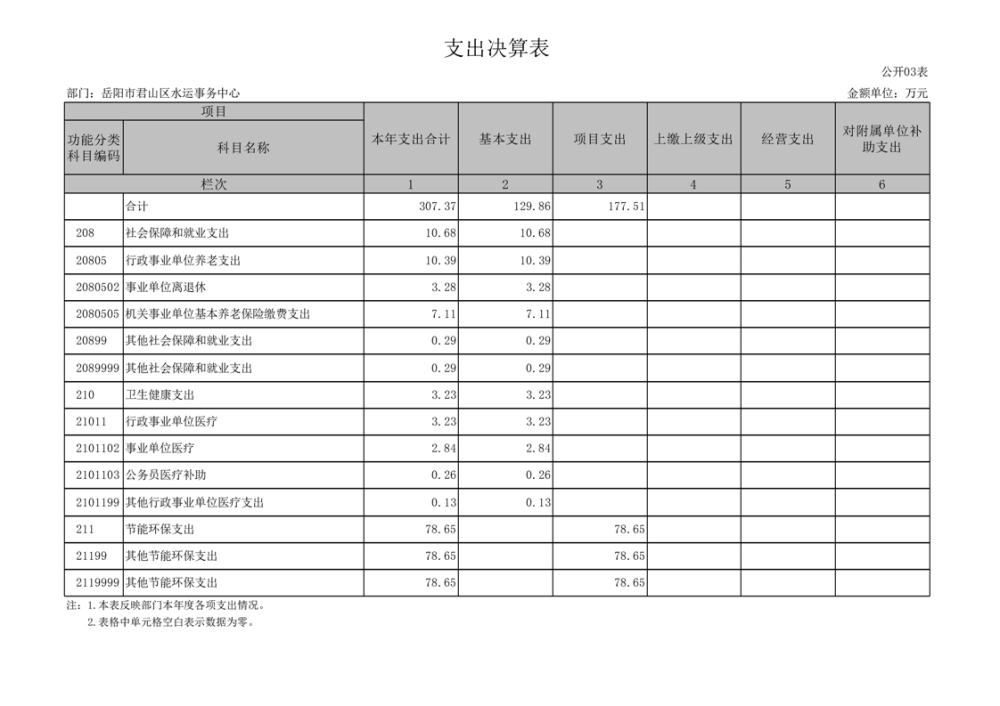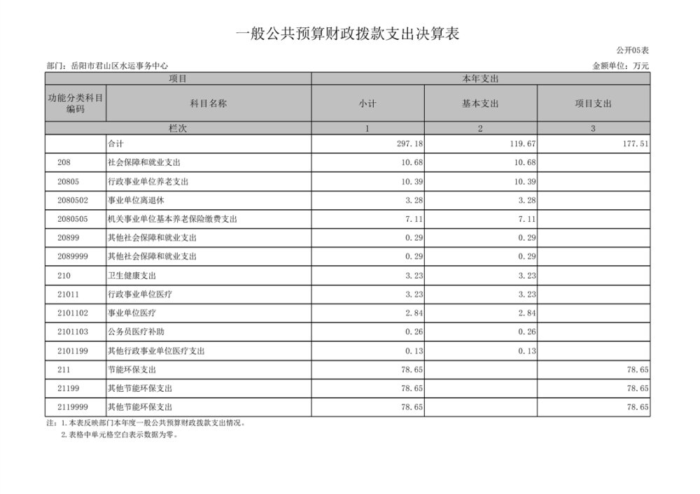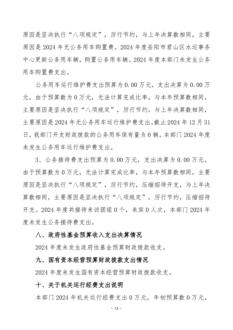 2024年度岳阳市君山区水运事务中心部门决算公开