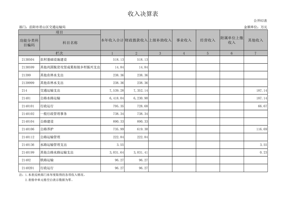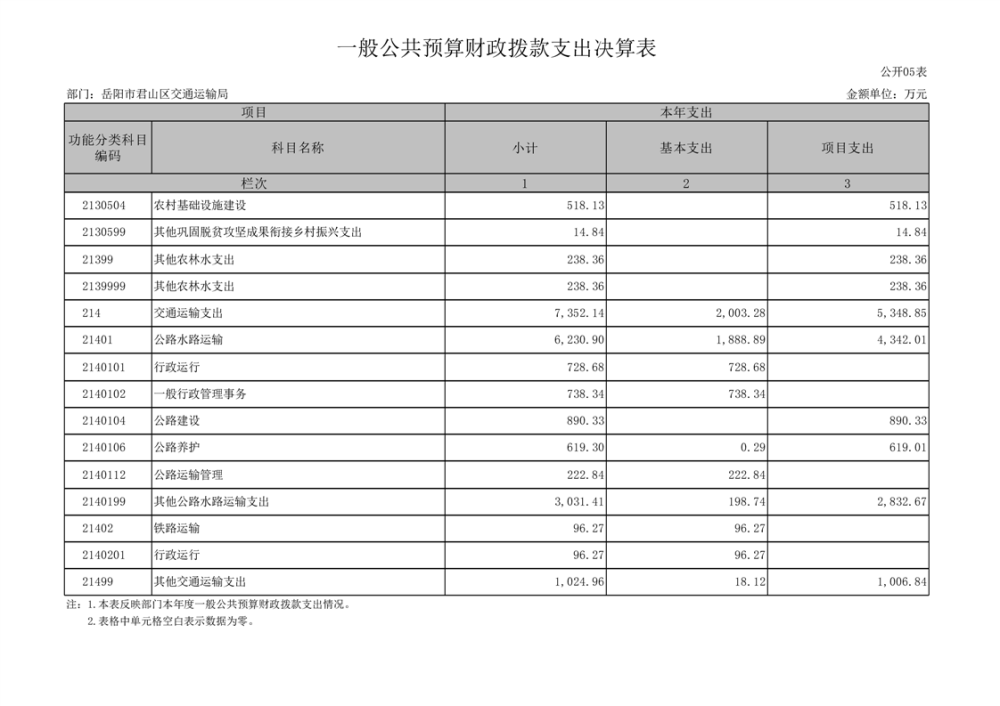2024年度岳阳市君山区交通运输局(汇总)部门决算公开