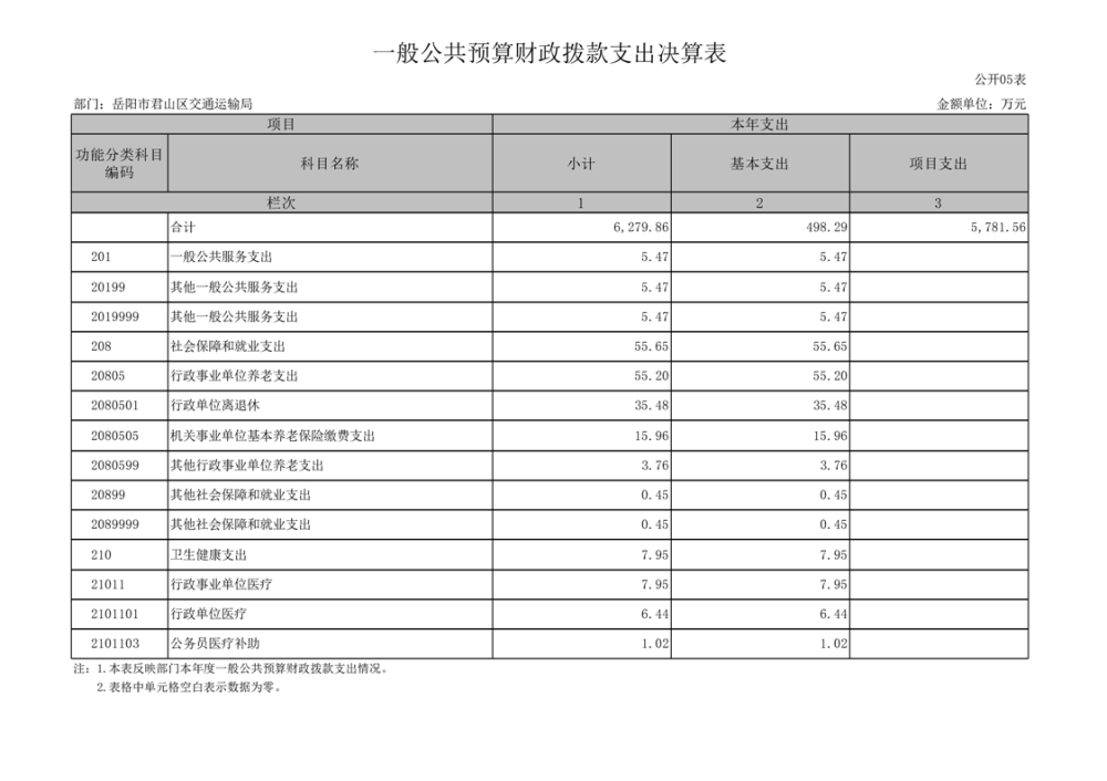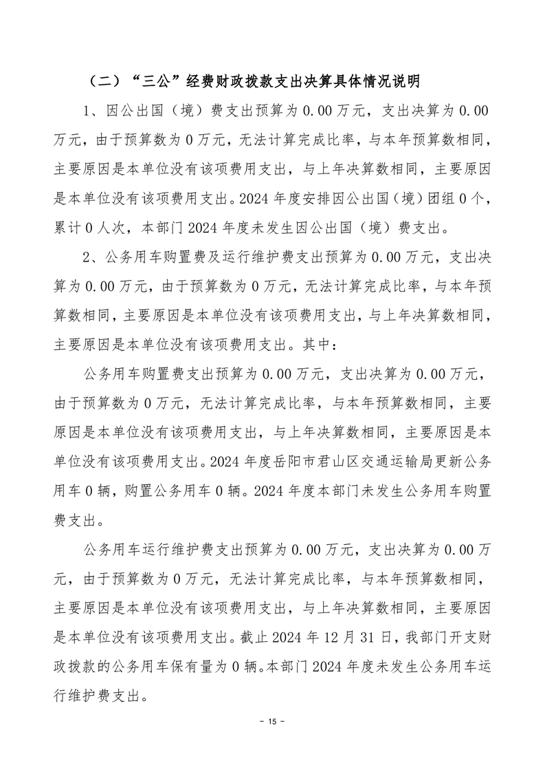 2024年度岳阳市君山区交通运输局(本级)部门决算公开