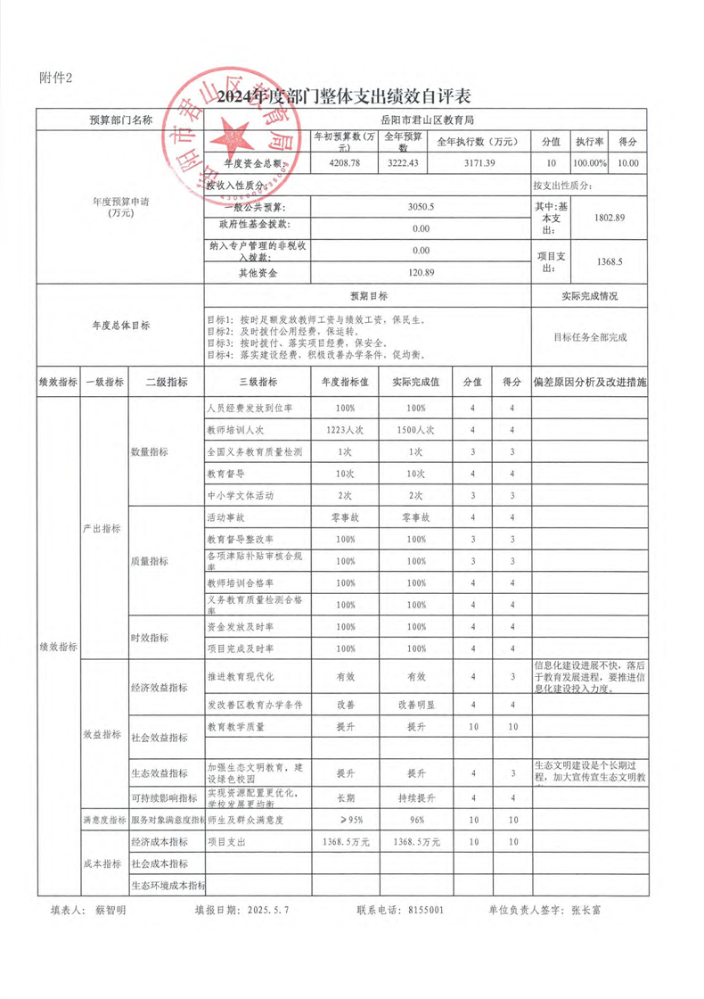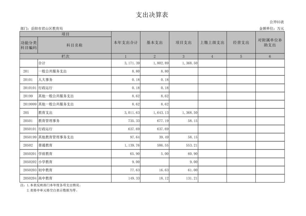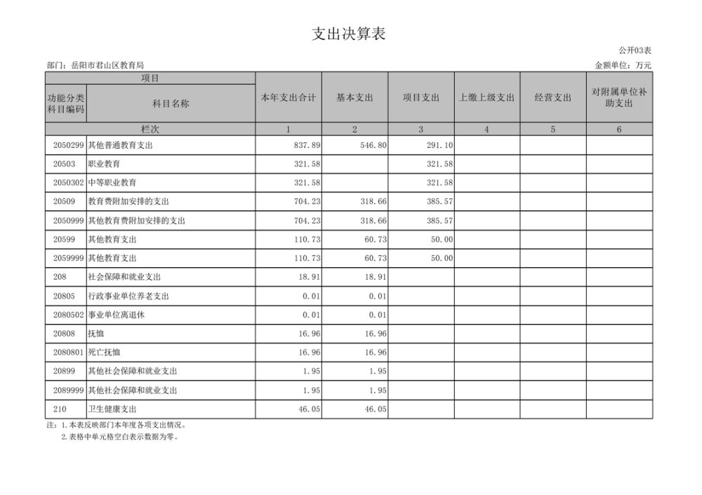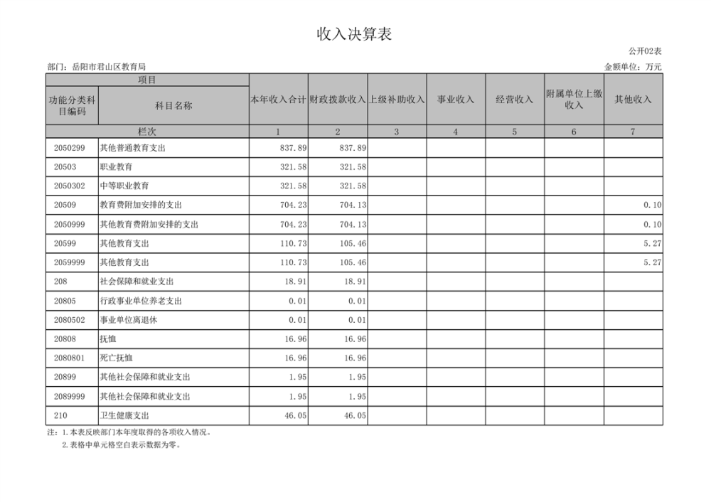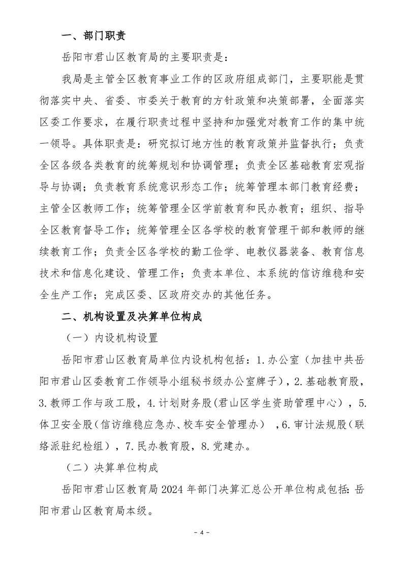 2024年度岳阳市君山区教育局(本级)部门决算公开