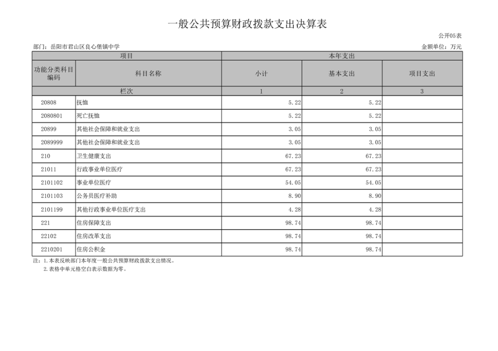 2024年度岳阳市君山区良心堡镇中学部门决算公开