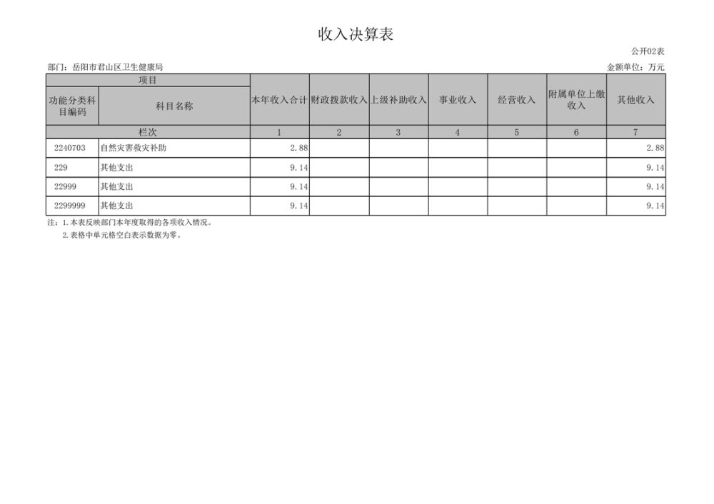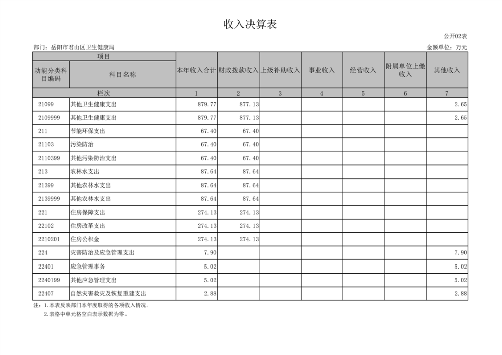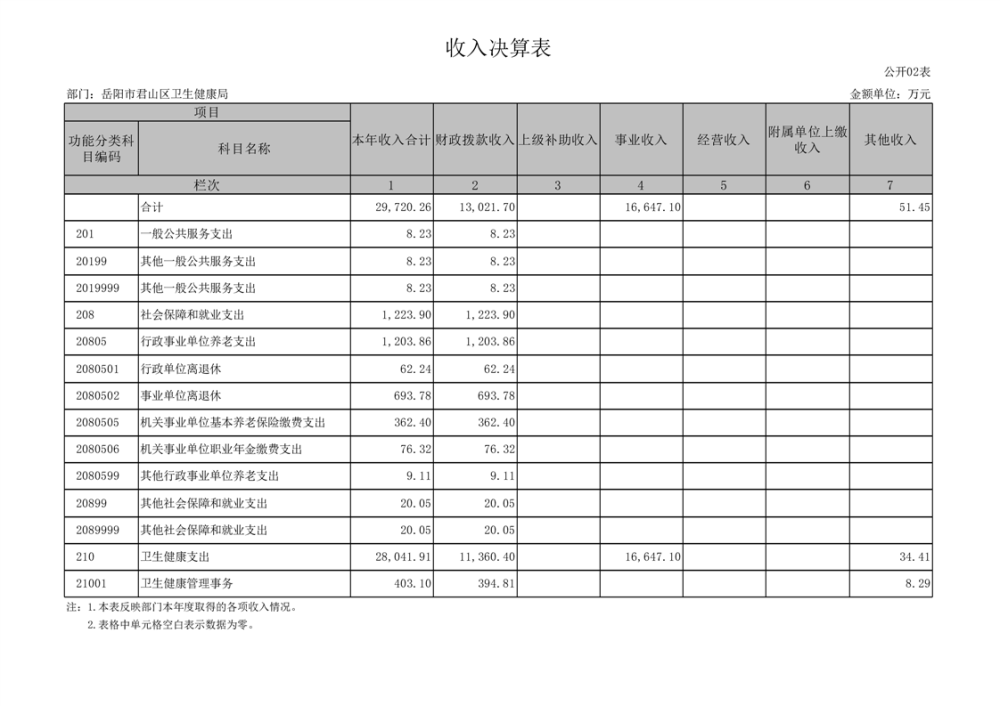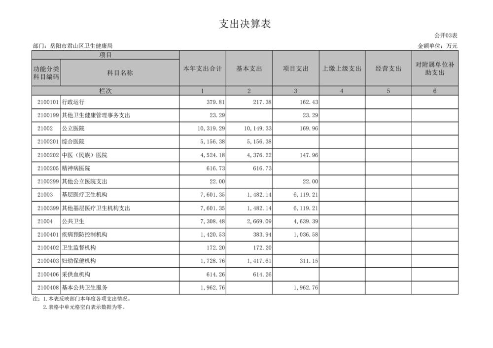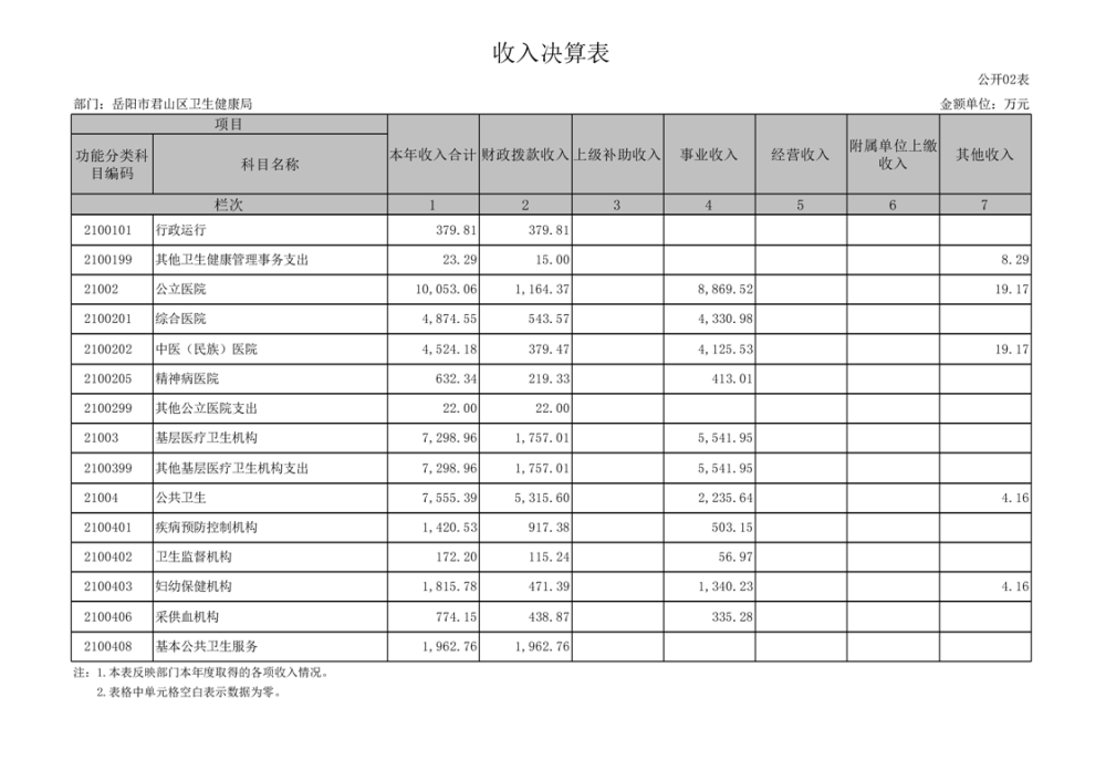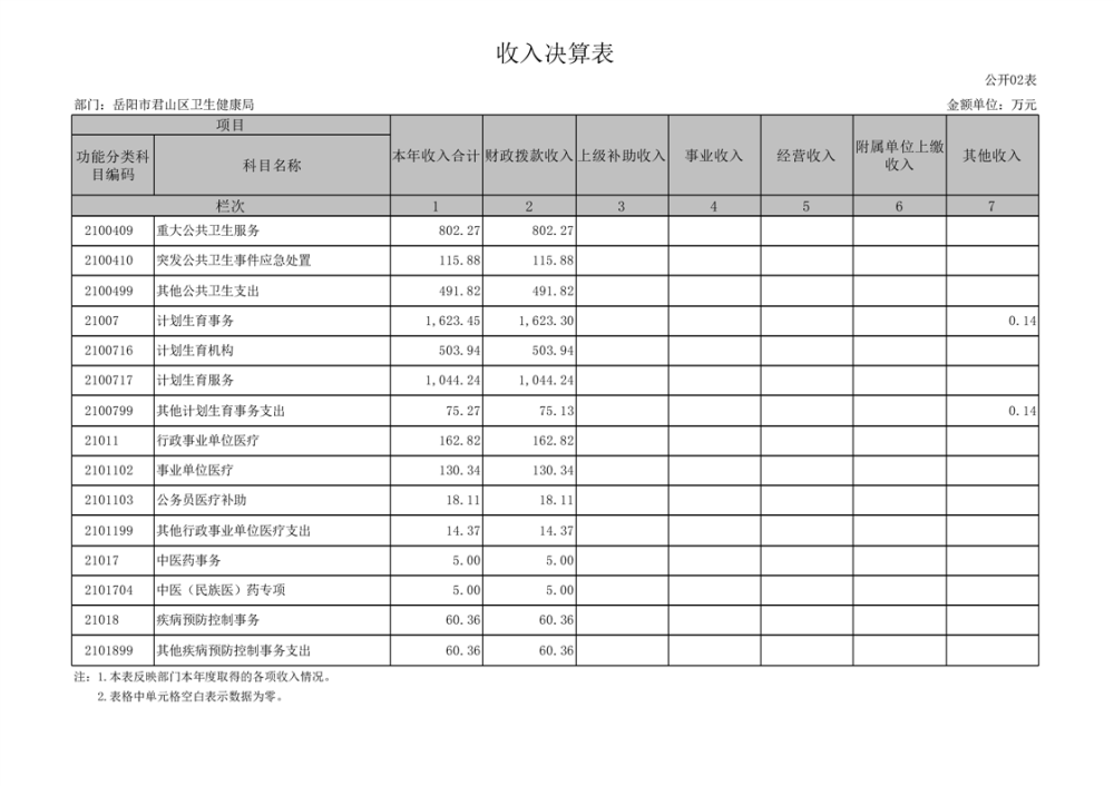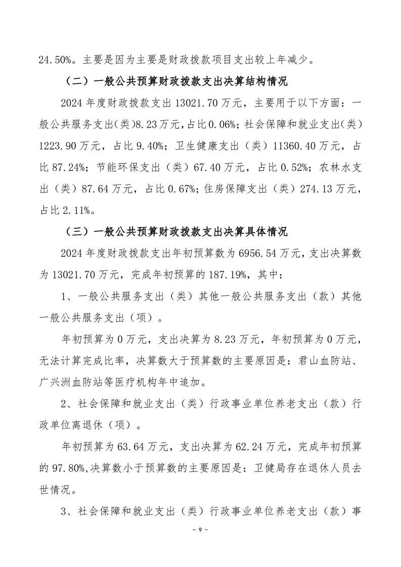 2024年度岳阳市君山区卫生健康局(汇总)部门决算公开