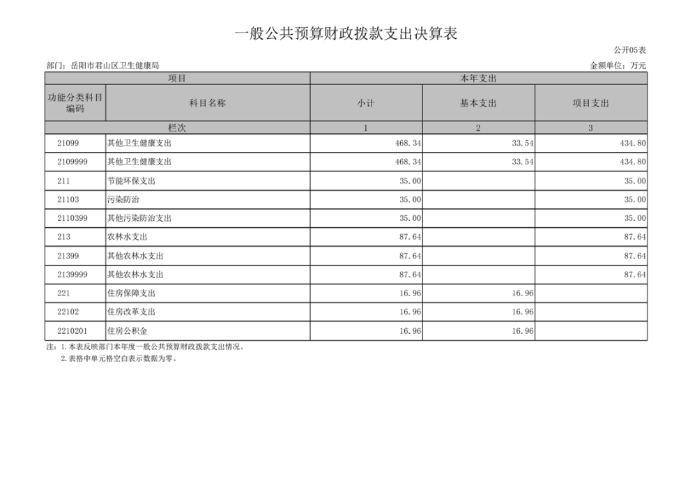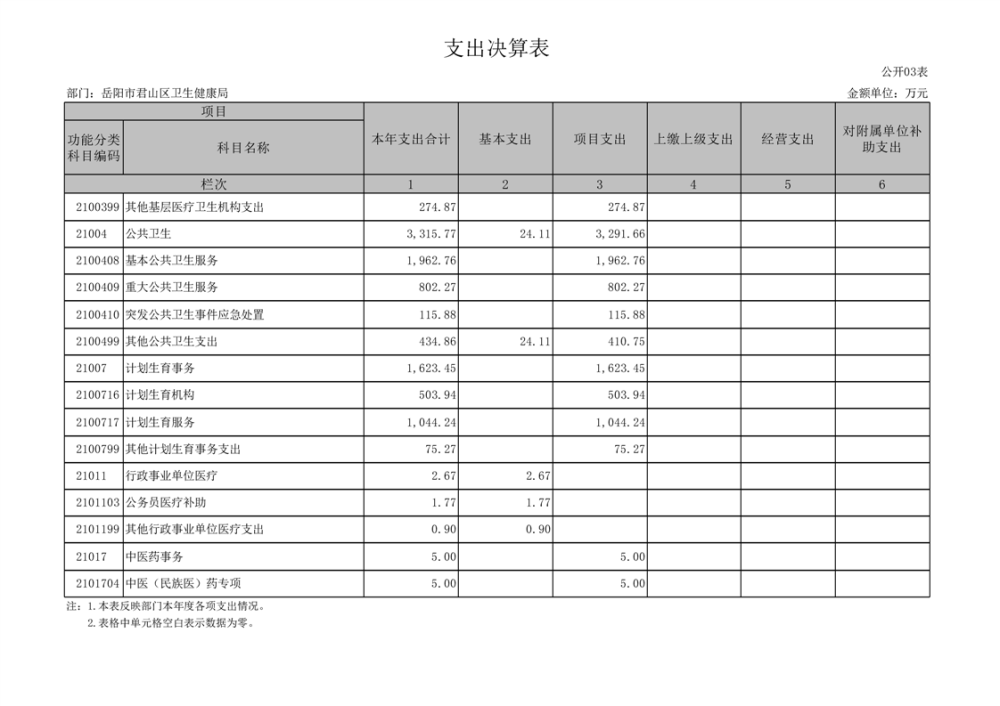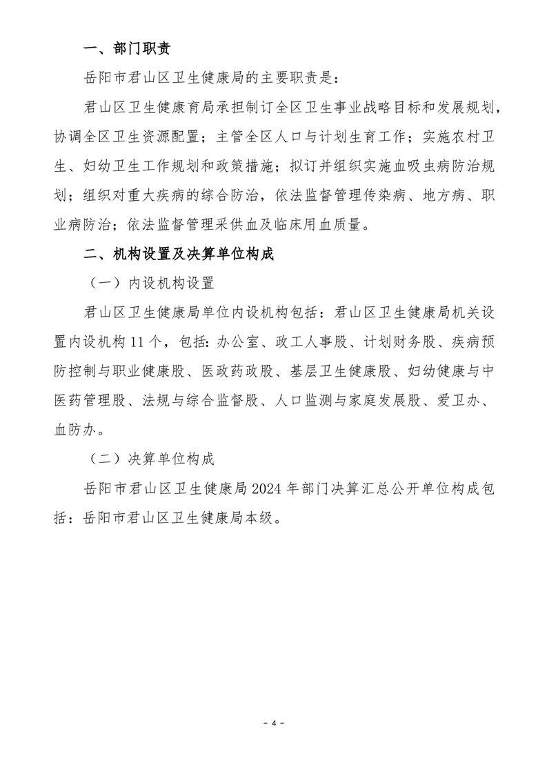 2024年度岳阳市君山区卫生健康局(本级)部门决算公开