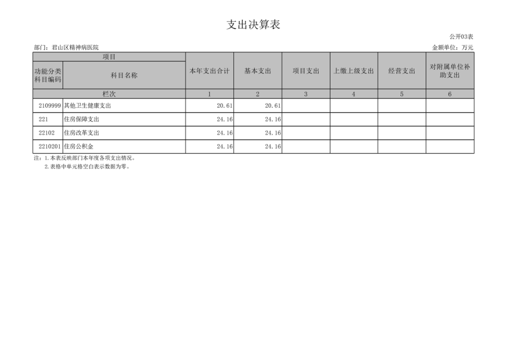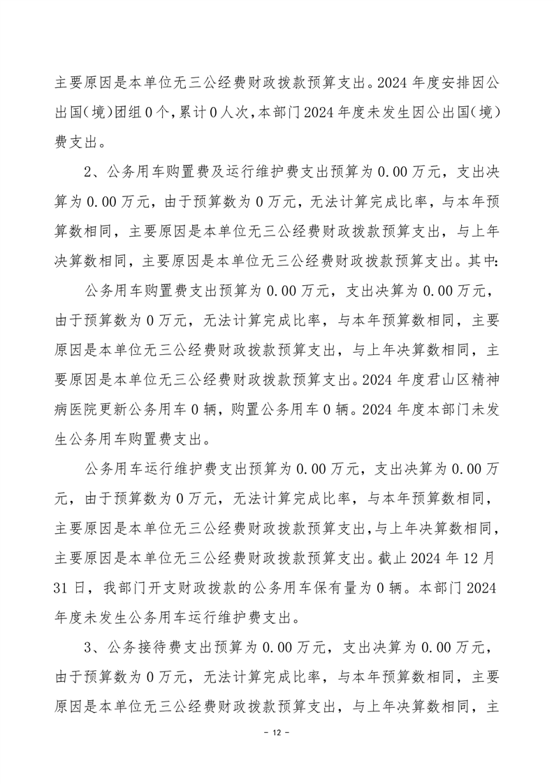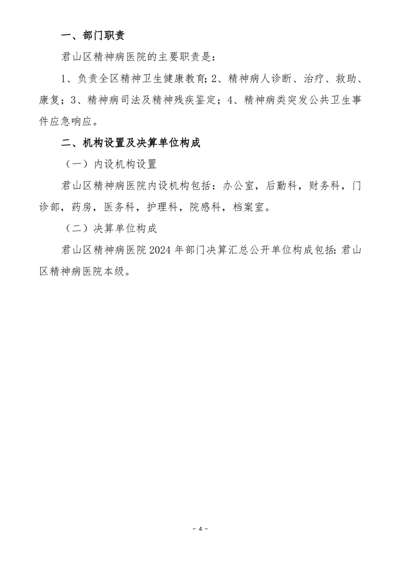 2024年度君山区精神病医院部门决算公开