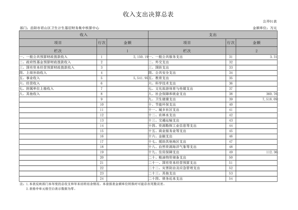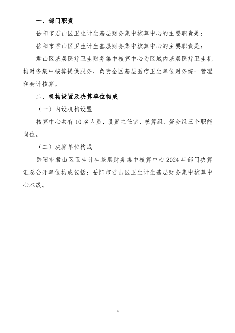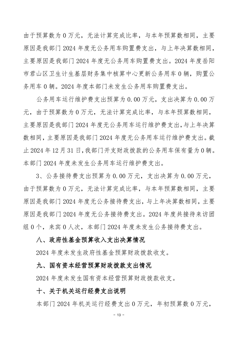 2024年度岳阳市君山区卫生计生基层财务集中核算中心部门决算公开