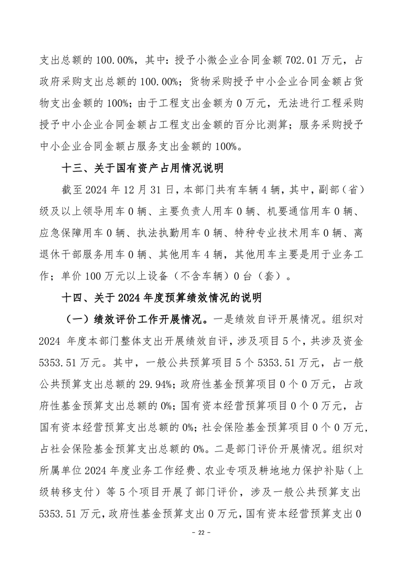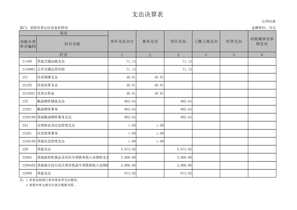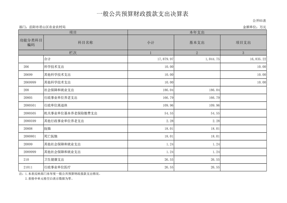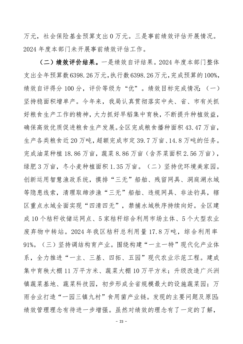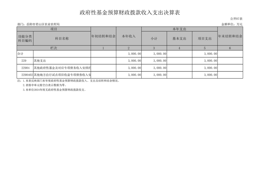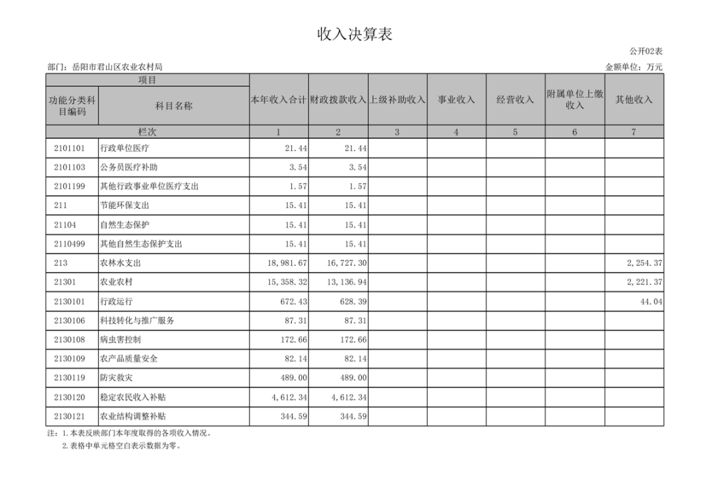 2024年度岳阳市君山区农业农村局(本级)部门决算公开