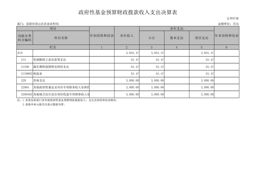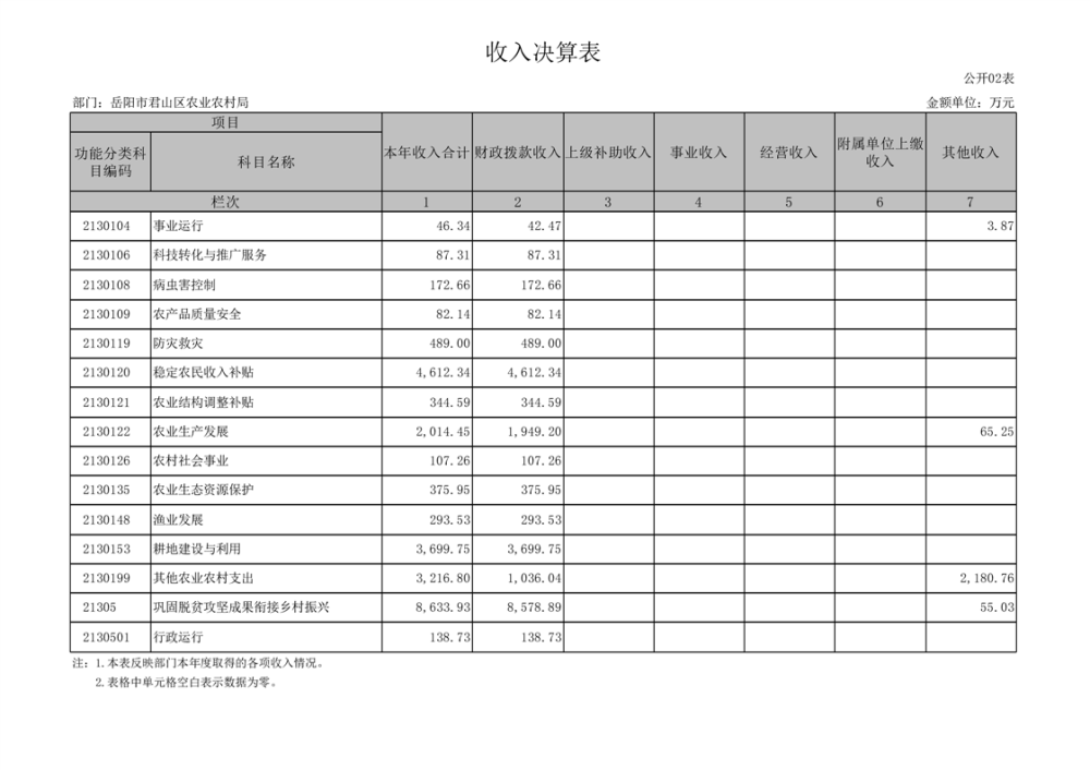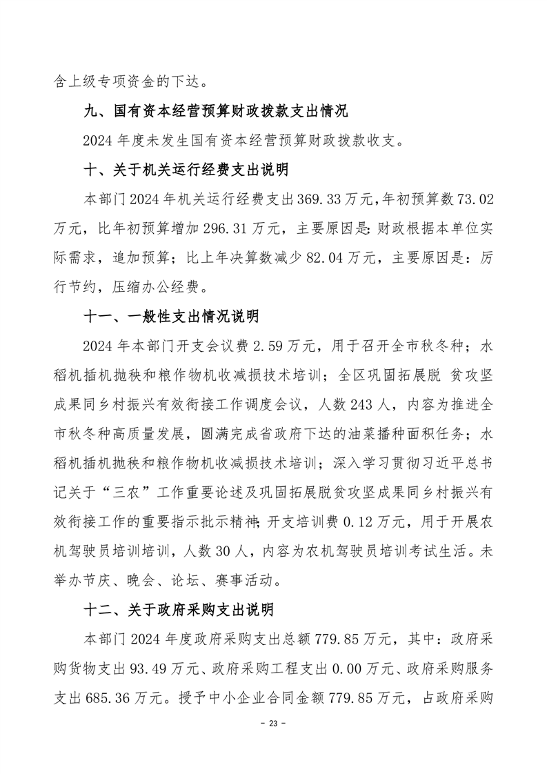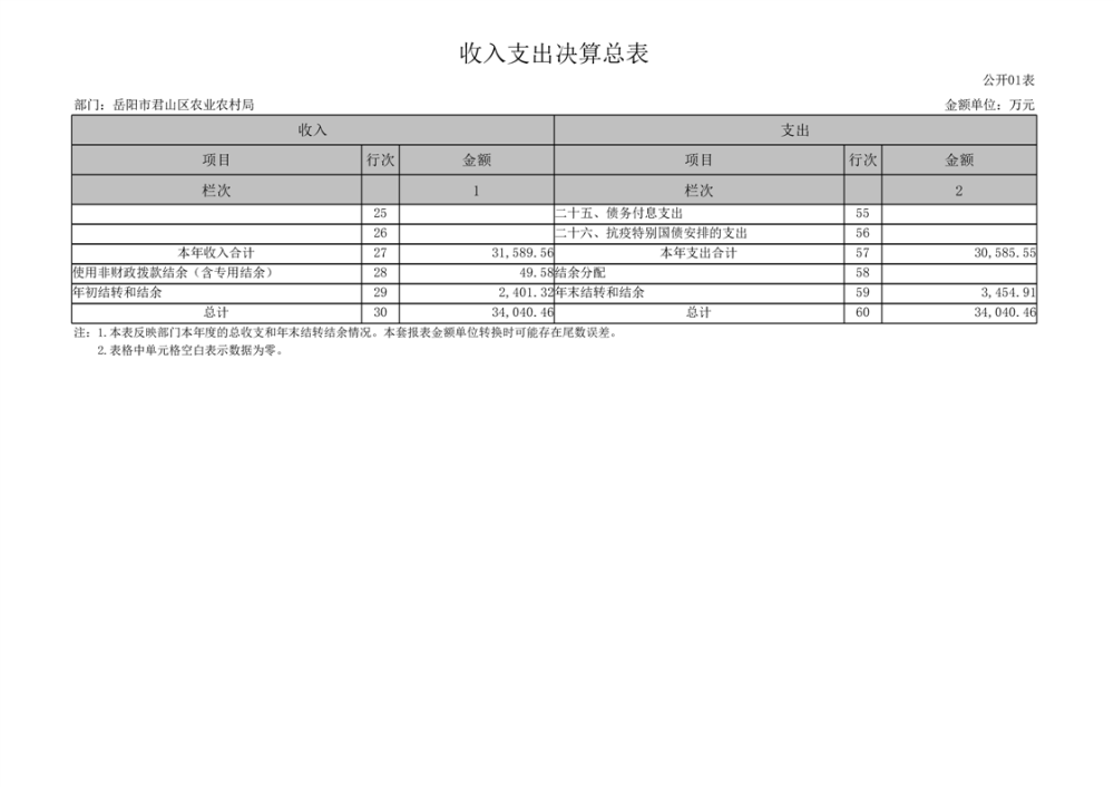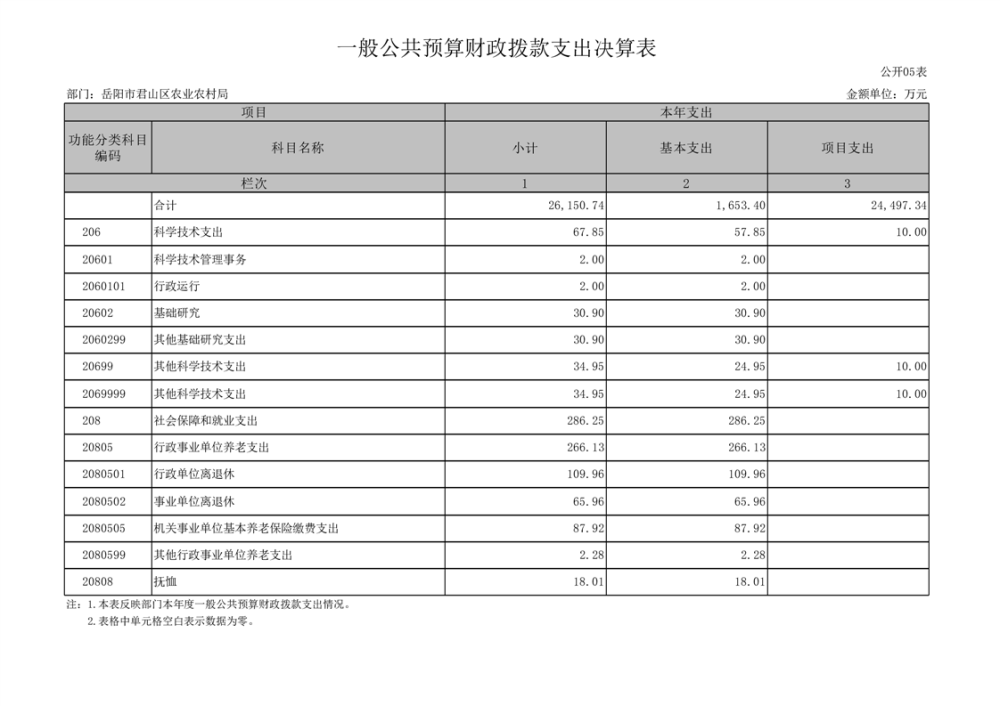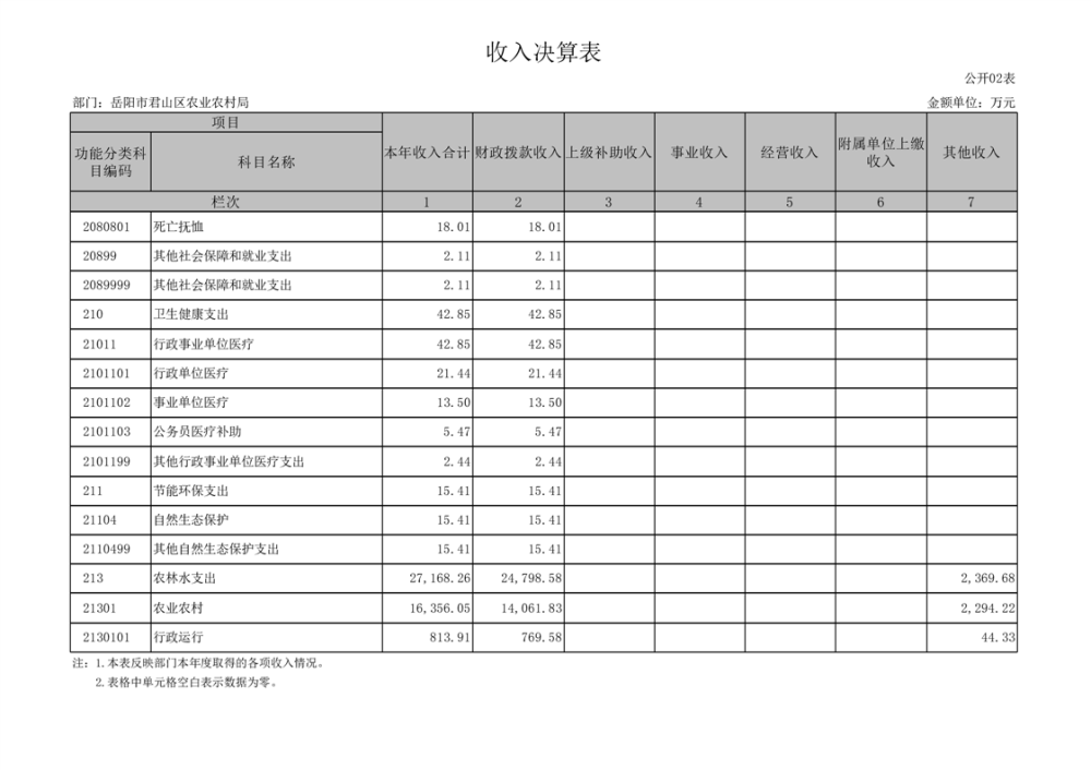 2024年度岳阳市君山区农业农村局(汇总)部门决算公开