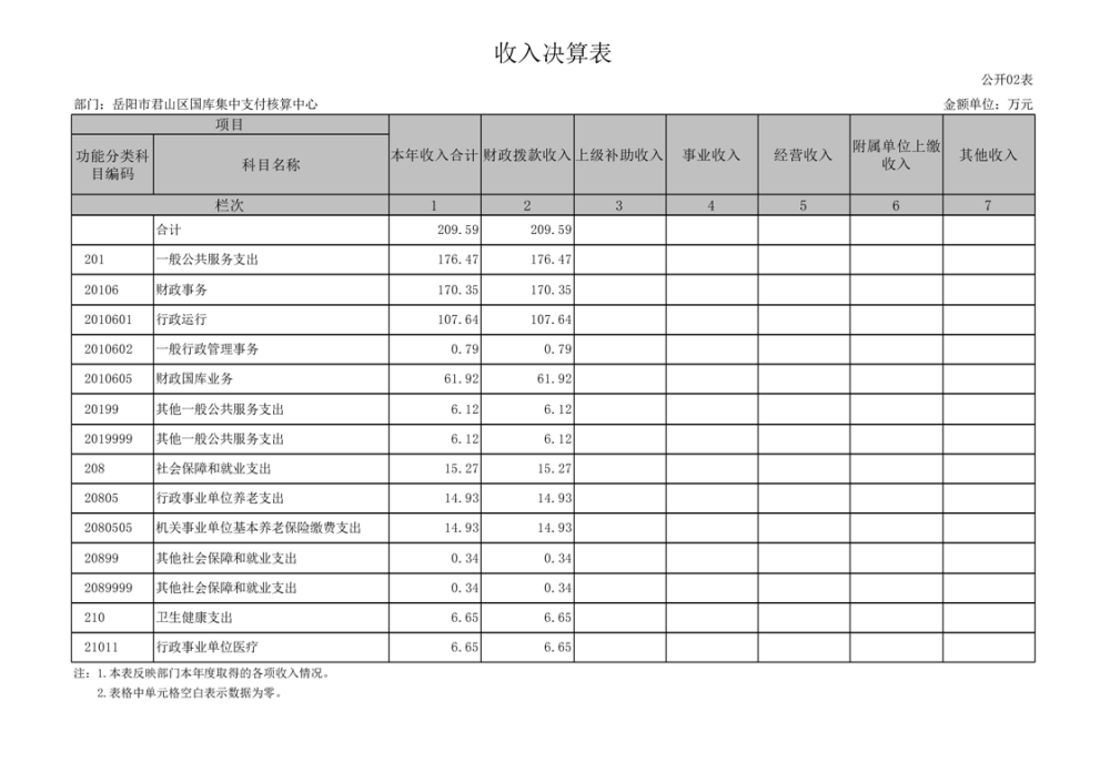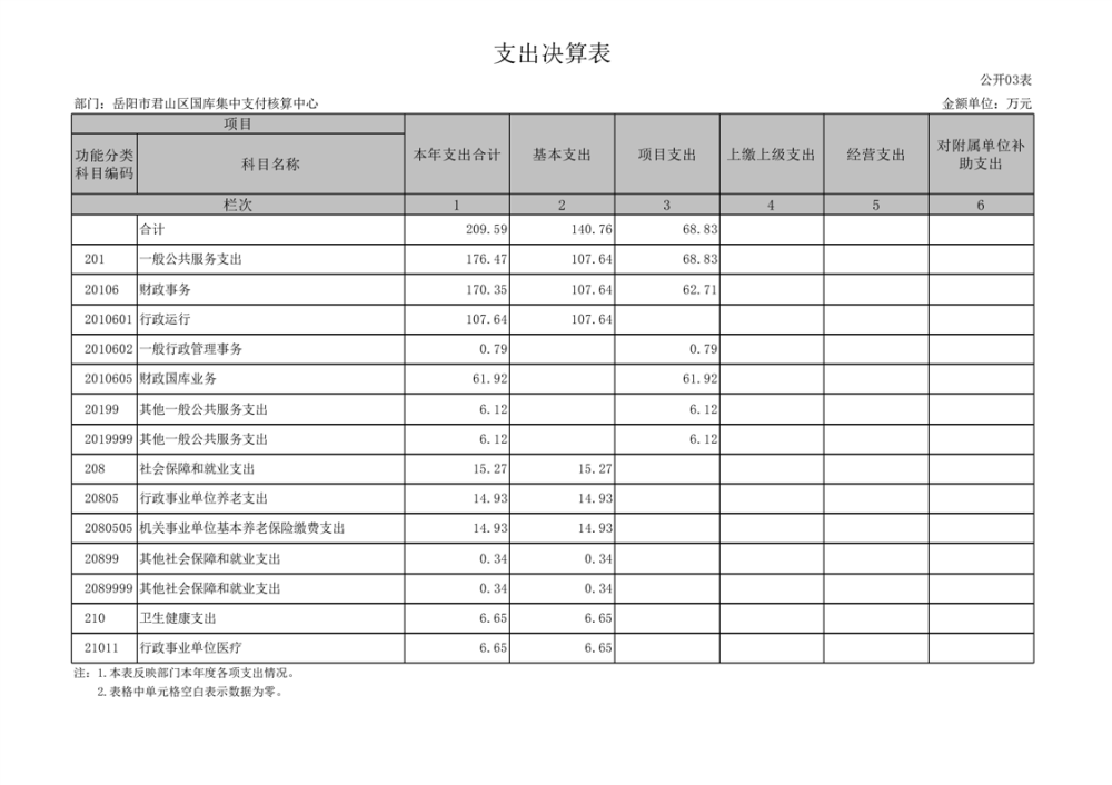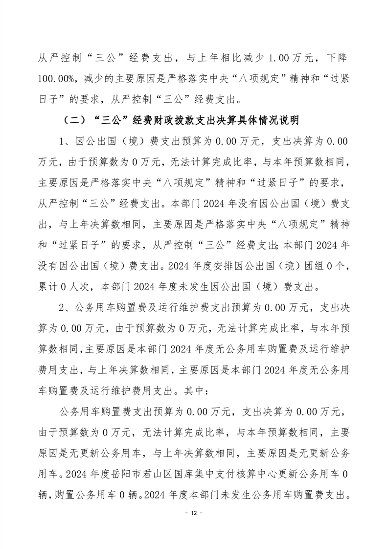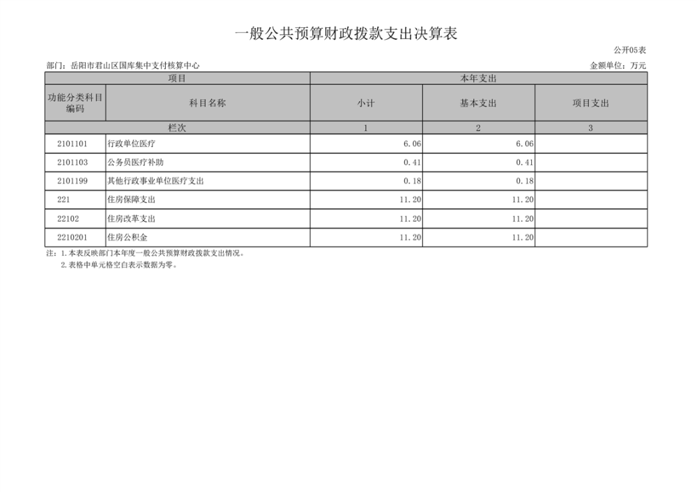 2024年度岳阳市君山区国库集中支付核算中心部门决算公开