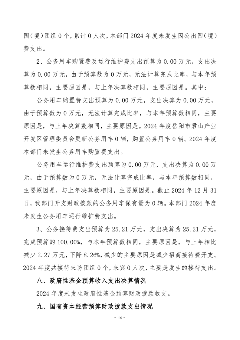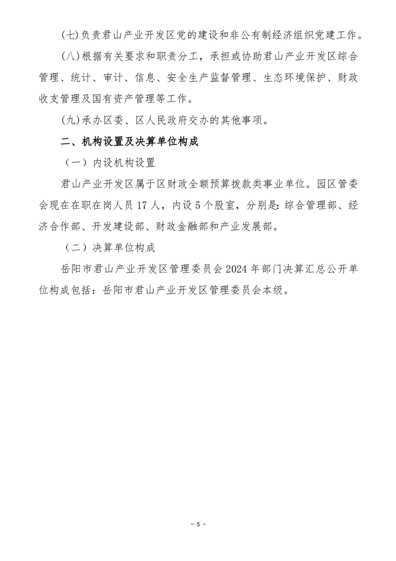 2024年度岳阳市君山产业开发区管理委员会部门决算公开