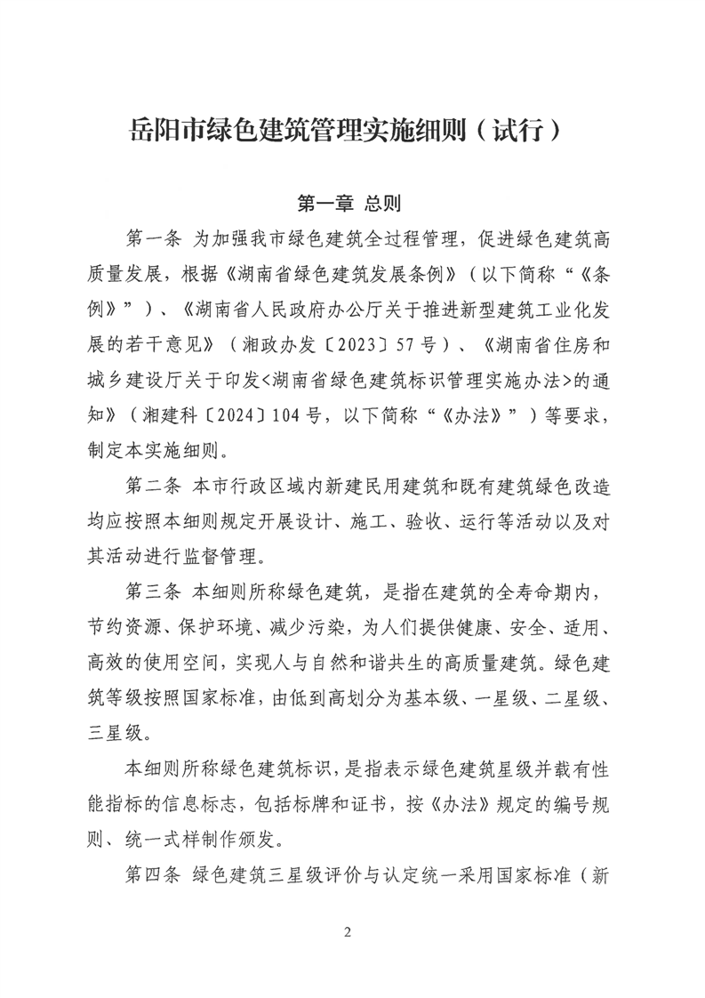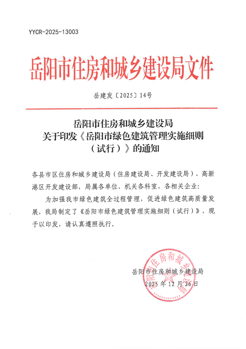 关于印发《岳阳市绿色建筑管理实施细则(试行)》的通知