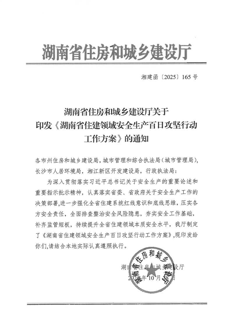 关于转发《湖南省住建领域安全生产百日攻坚行动方案》的通知