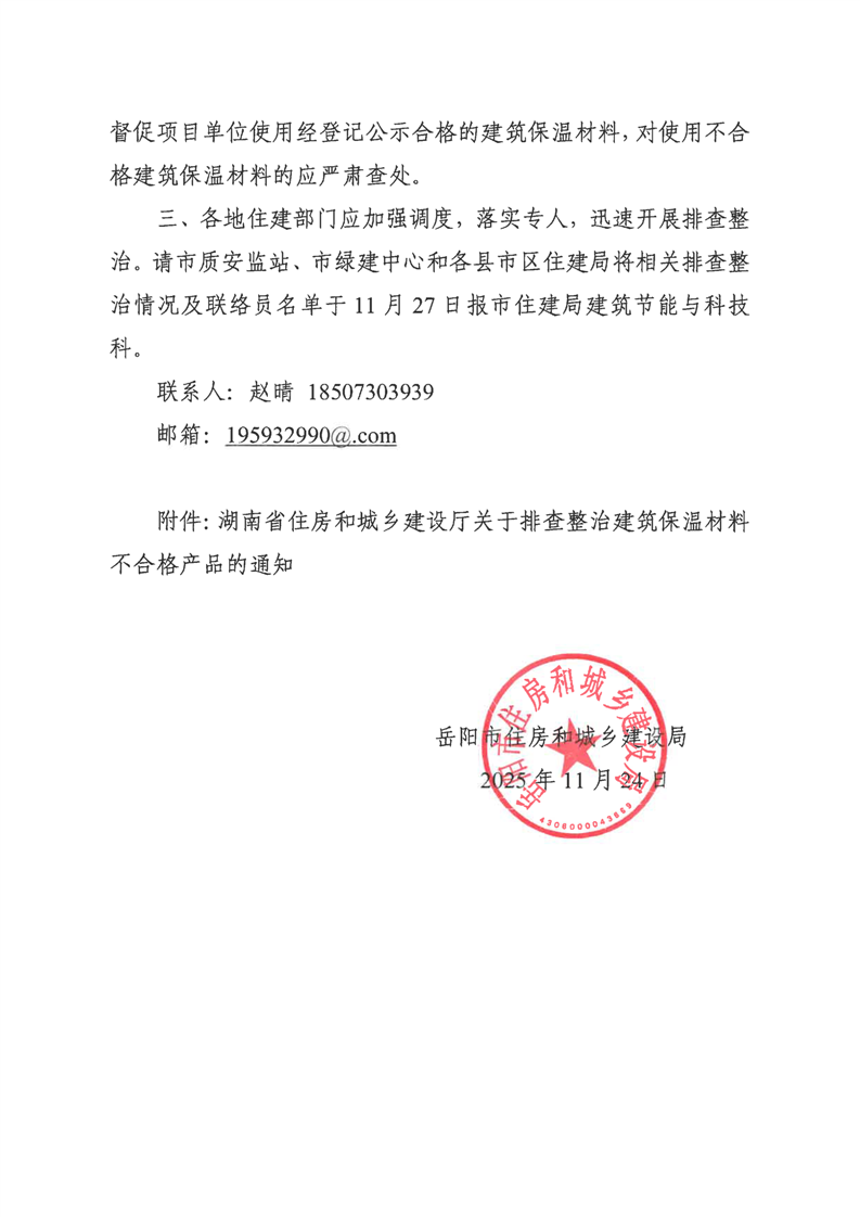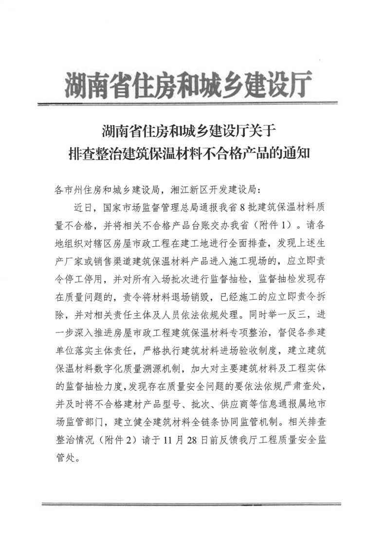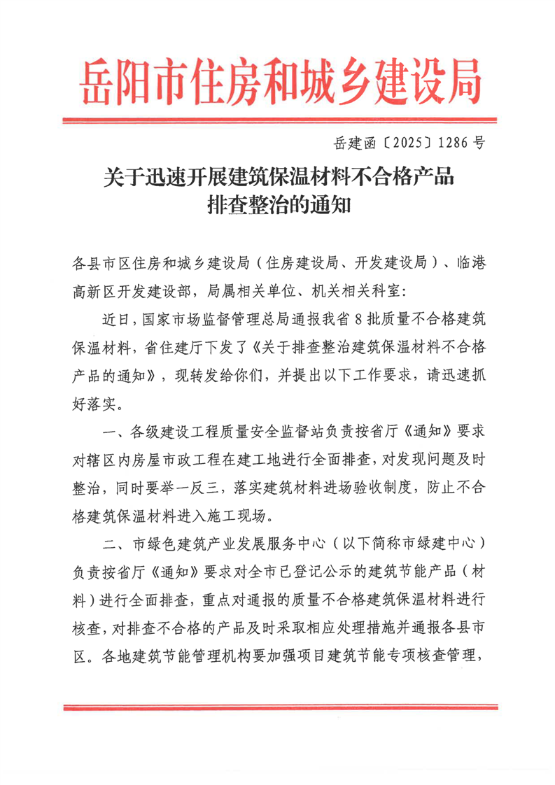 关于迅速开展建筑保温材料不合格产品排查整治的通知
